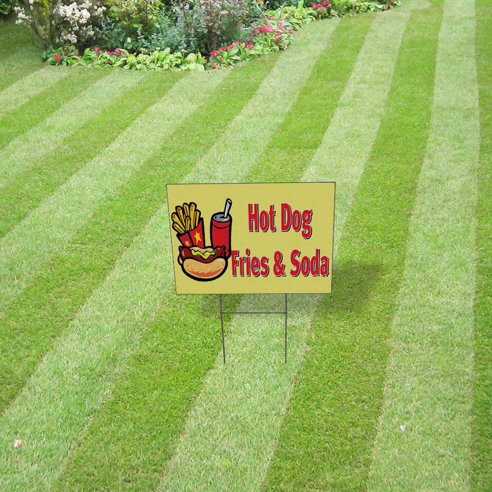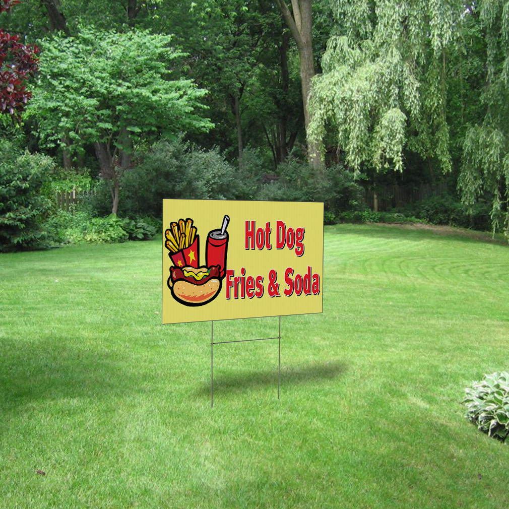 Weatherproof Yard Sign Hot Dog Fries Soda Restaurant Cafe Bar Lawn Garden