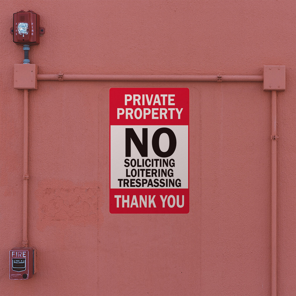 как выглядит Vertical Vinyl Sticker Sign Private Property No Soliciting Loitering Trespassing фото