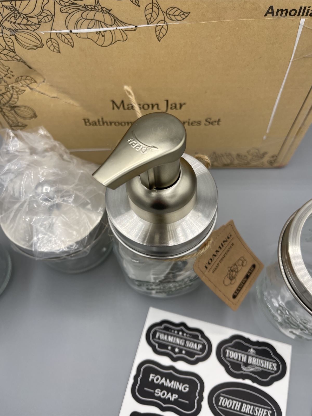 Mason Jar Bathroom Accessories Set 4 Pcs Brushed Nickel