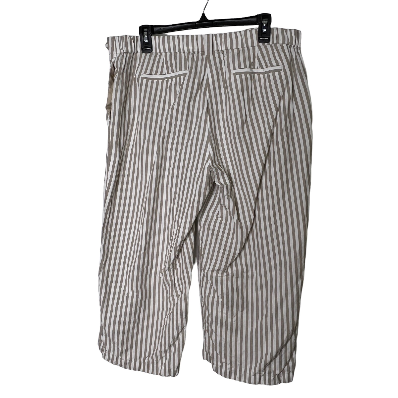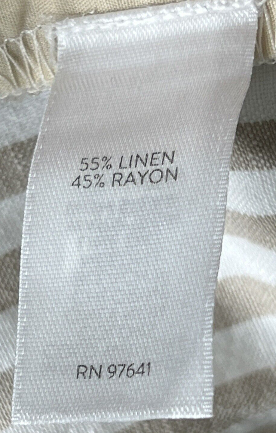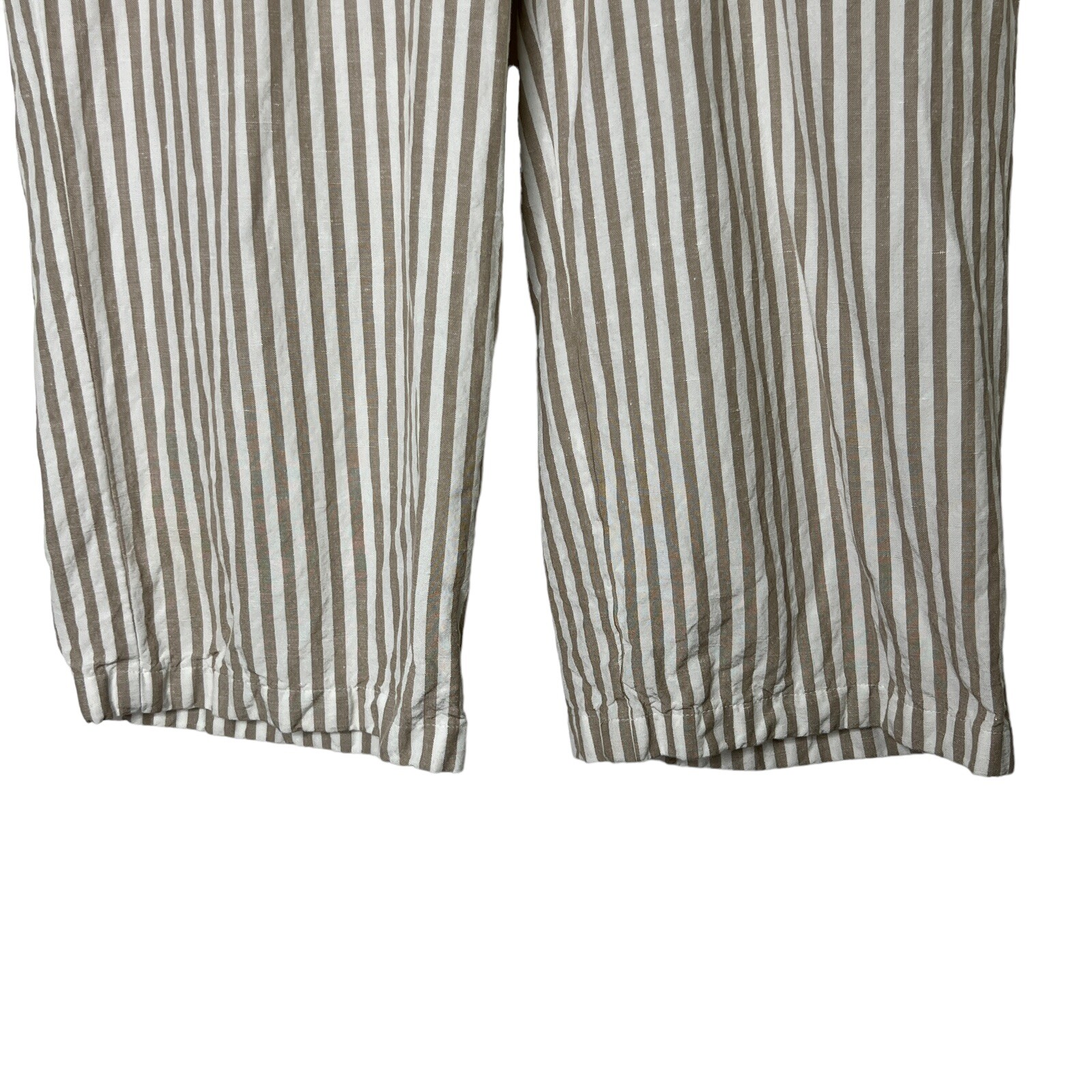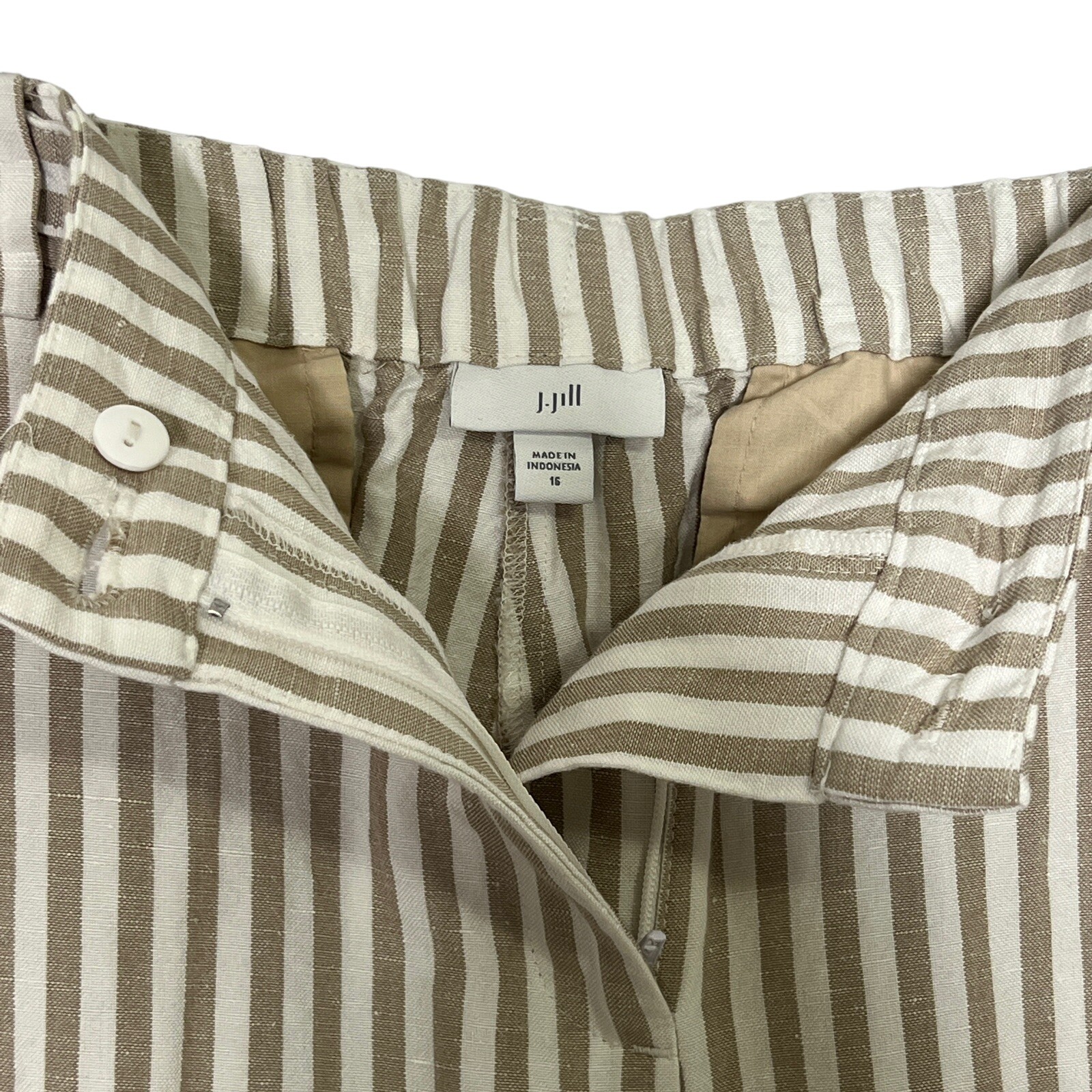 J Jill Linen Wide Leg Cropped Striped Pants Sz 16 Tan White Elastic Back Waist