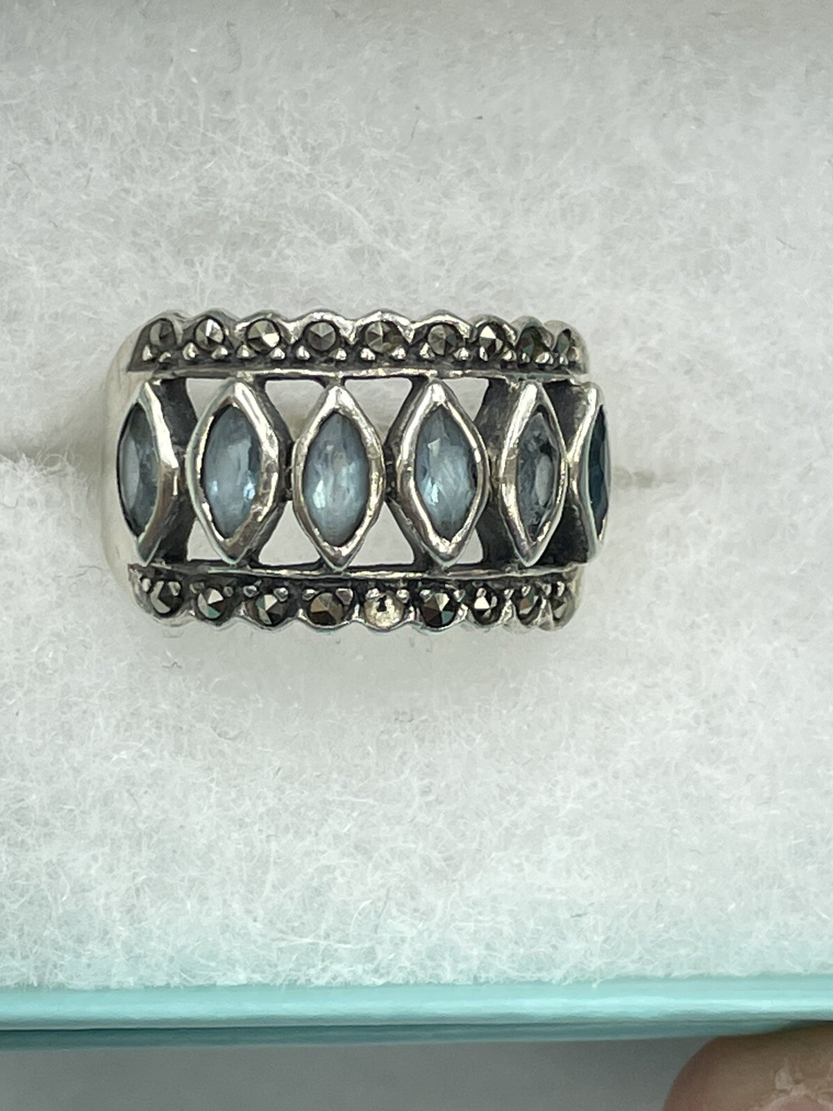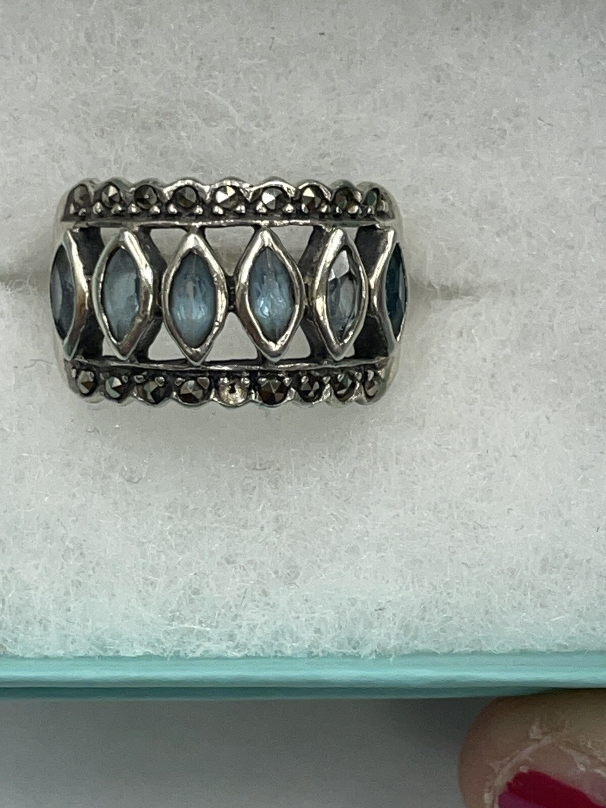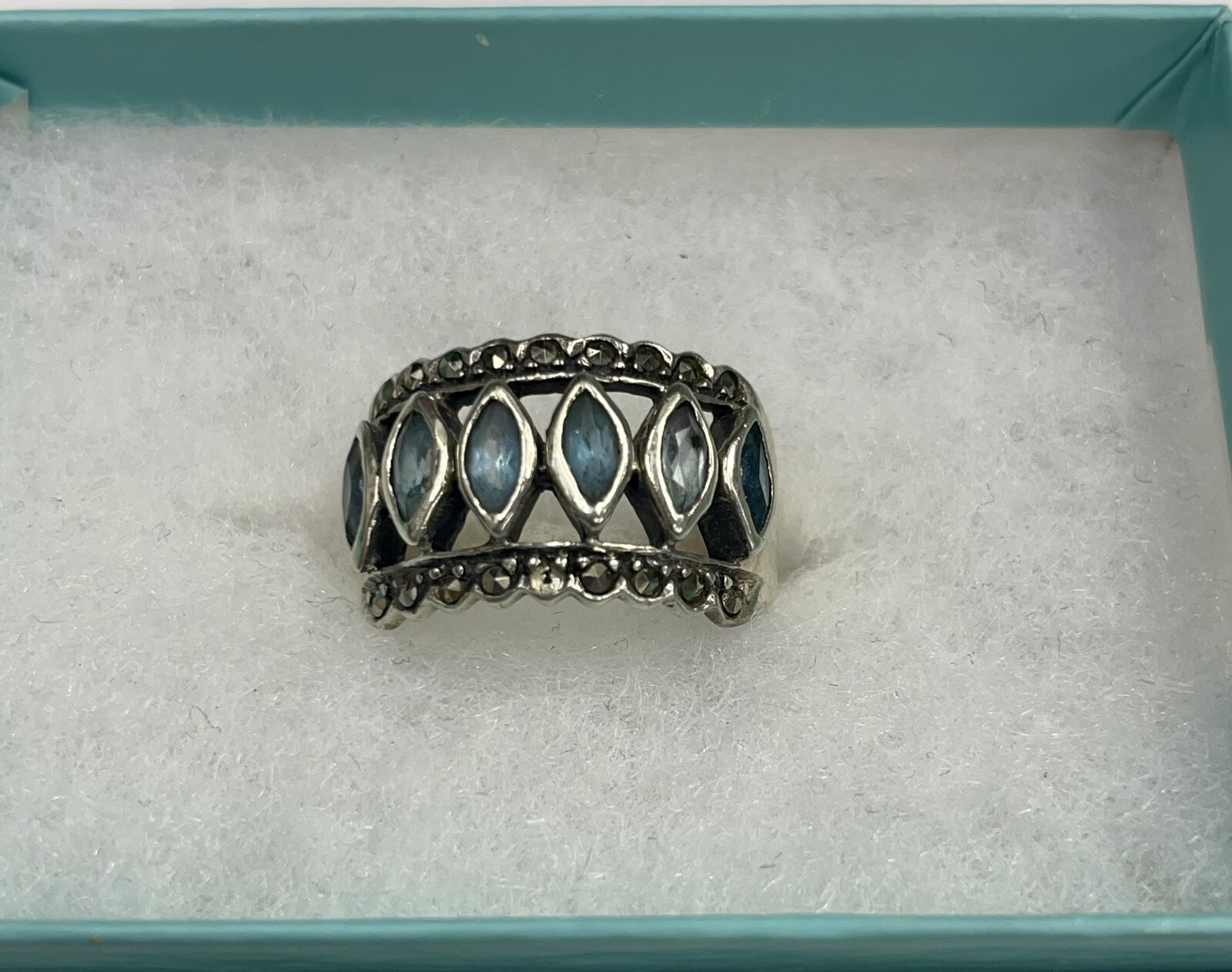 Sterling Silver Marcasite Blue Topaz Fashion Ring Size 6.5