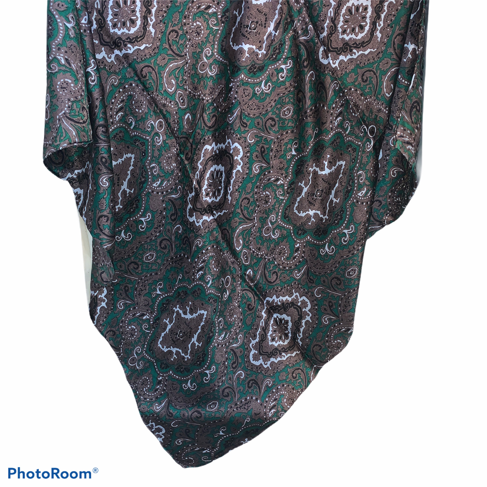 Wyoming Traders Wild Rag Green Chocolate Paisley 100 Silk Western Scarf 34.5