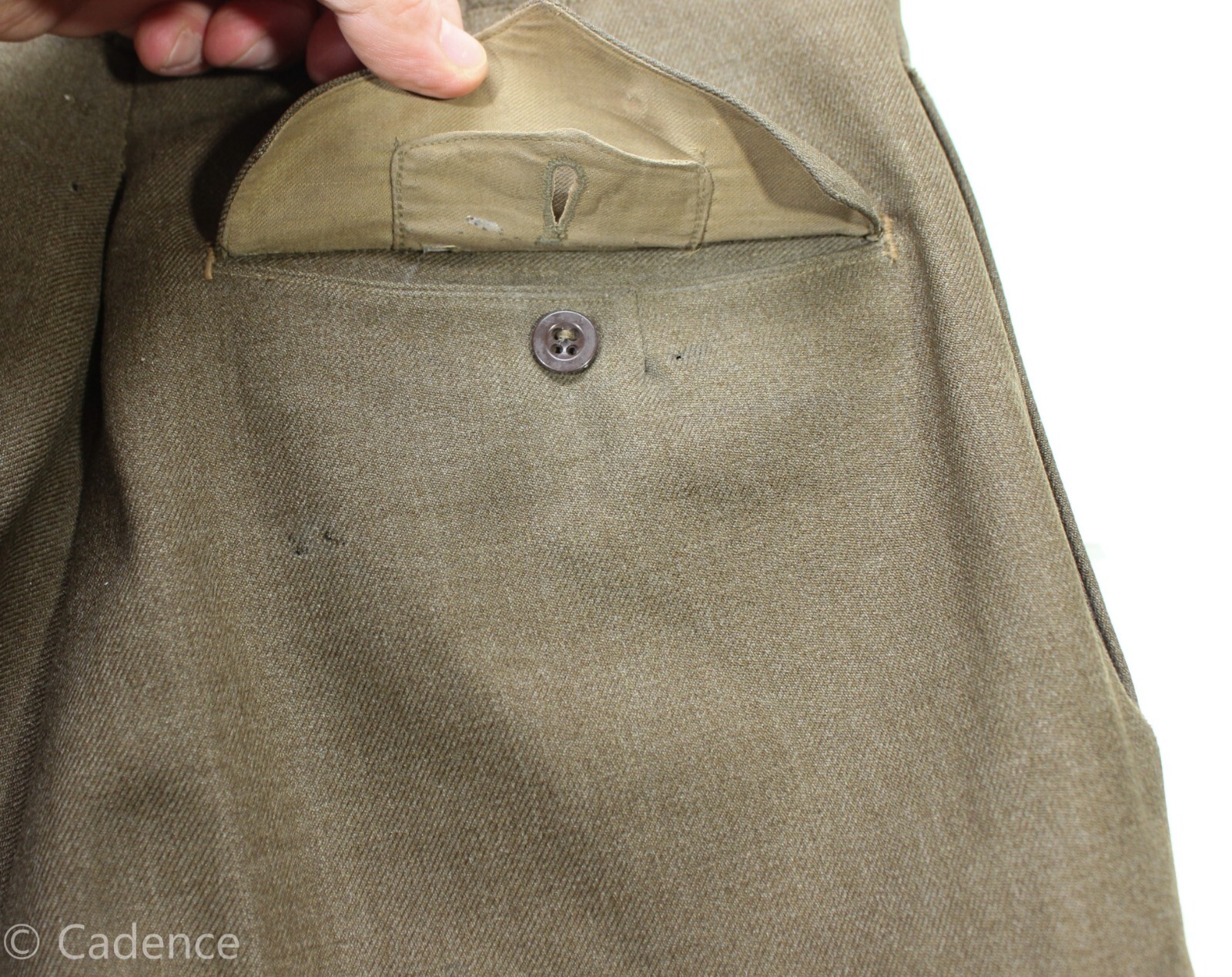 • US WW2 Army Enlisted OD Wool Uniform Pants Trousers FRENCH MADE 27X30 J456