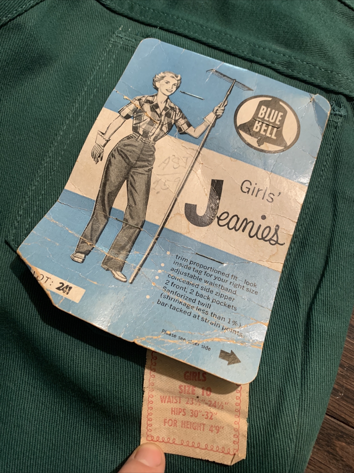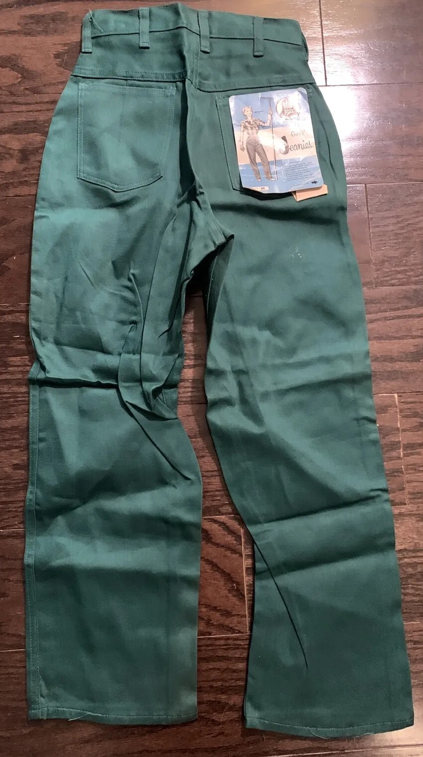 как выглядит VINTAGE NWT 1970s Jeanies Blue Bell Girls Sz 10 Pocket Jeans Side Zip Green RARE фото