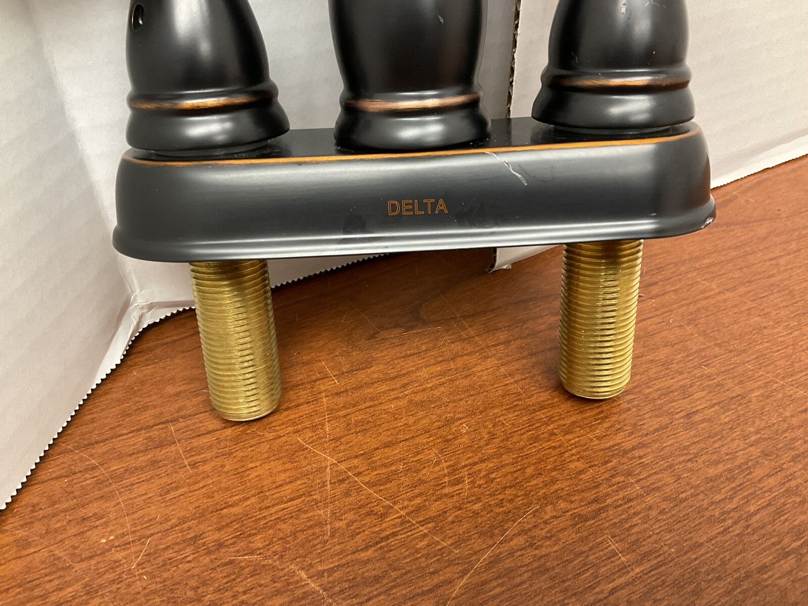 как выглядит DELTA 4" TWO HANDLE Centerset Bathroom Faucet, Oil Rubbed Bronze READ фото