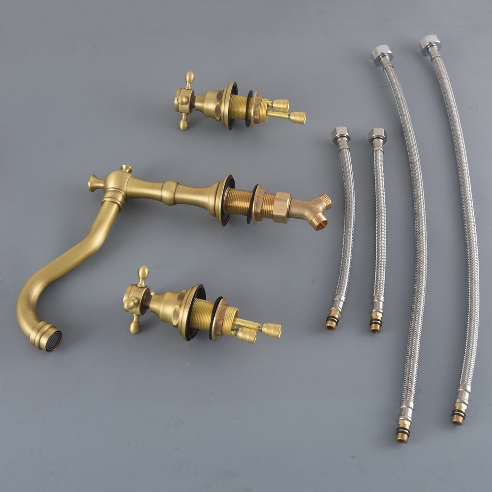Widespread Bathroom Sink Faucet 3 Holes Two Handles Antique Brass Mixer Tap