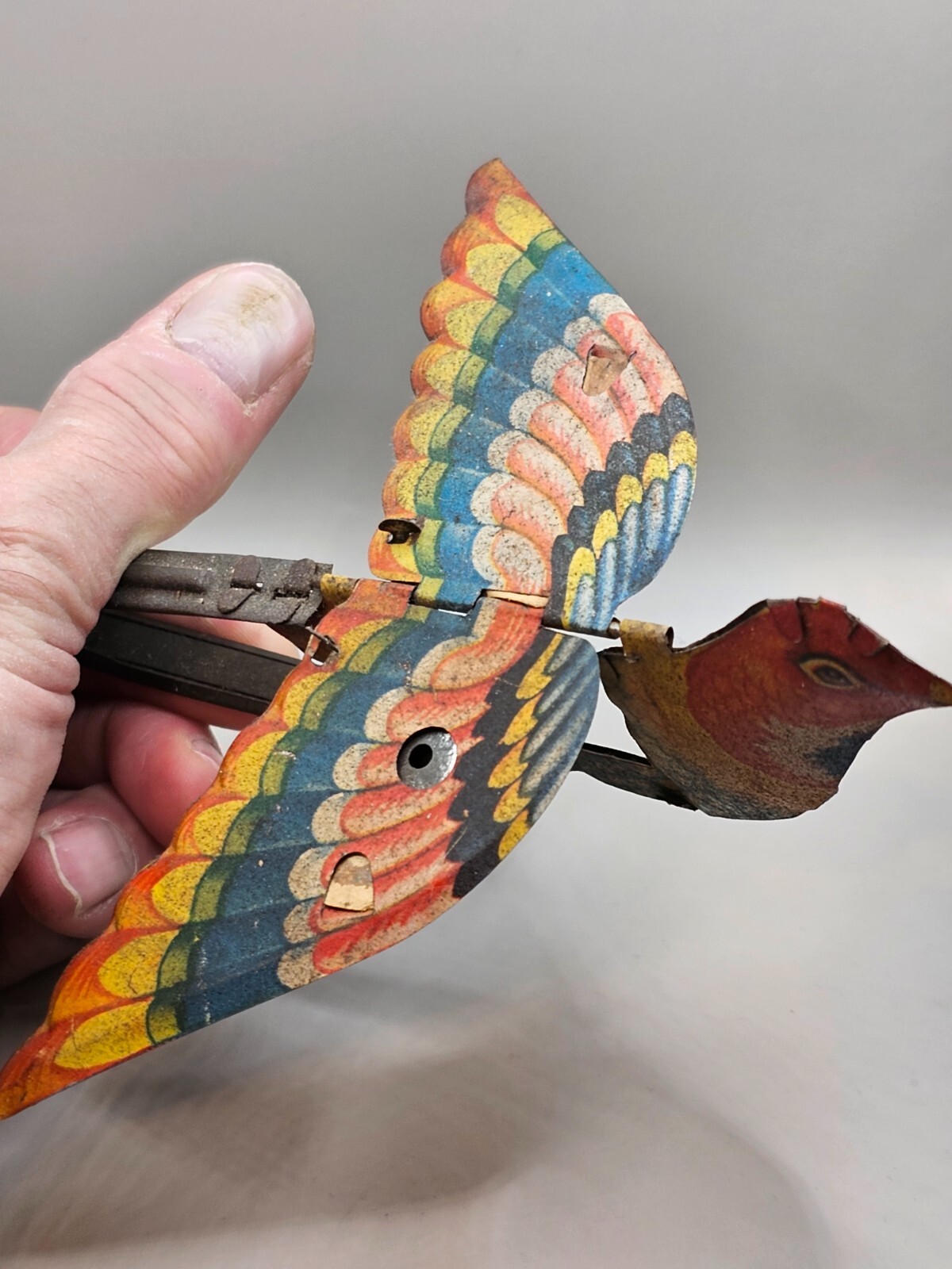 Antique toy Tin Litho Lithograph Wing Flapping Bird Moving Mechanical Tinplate A