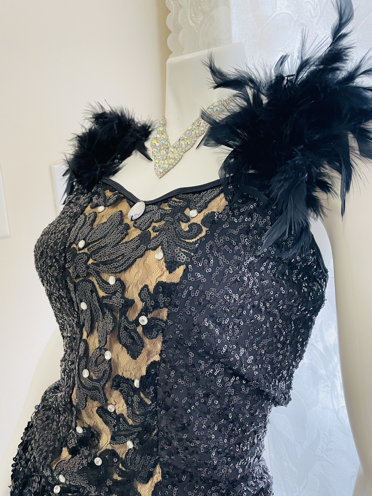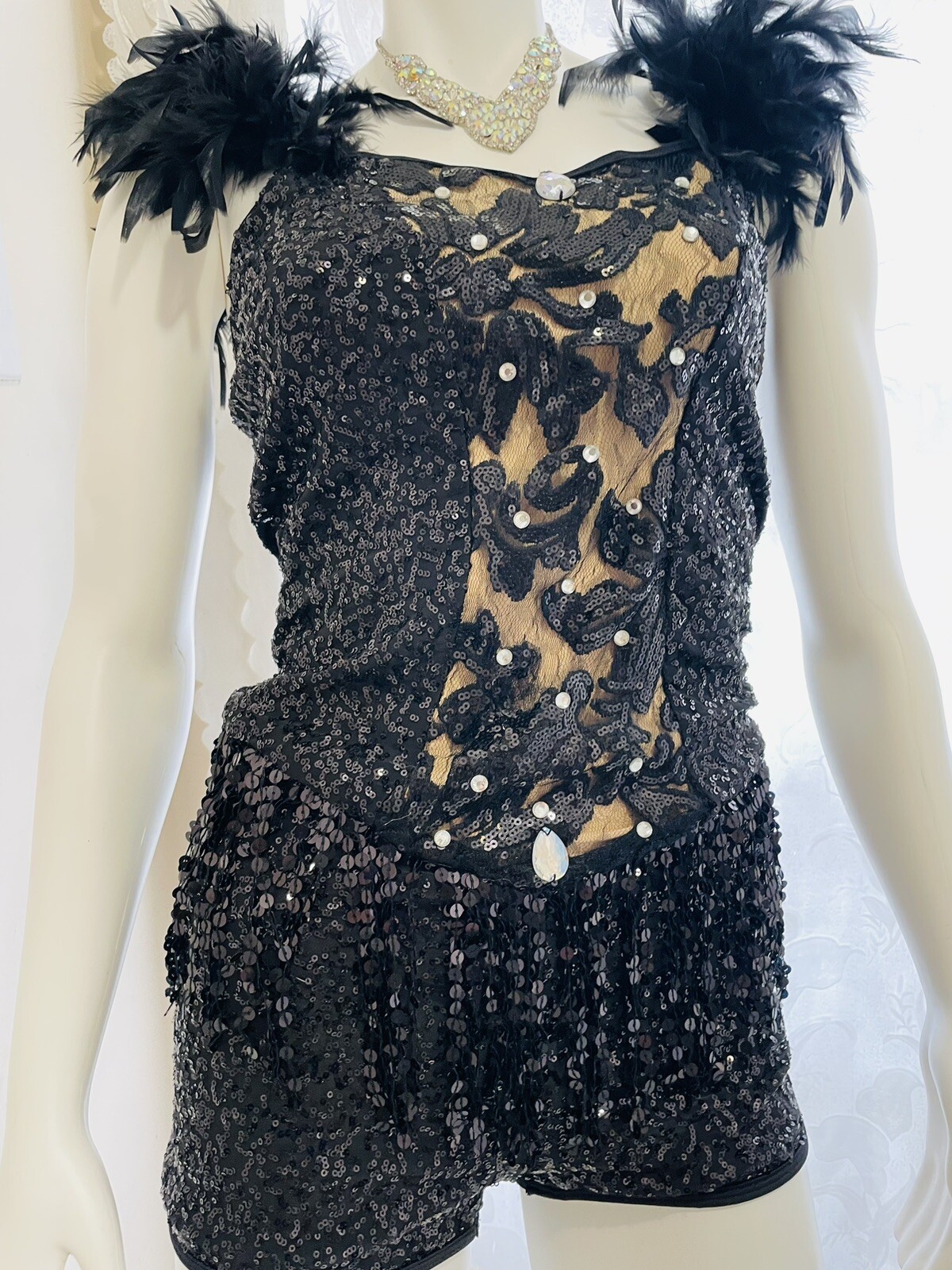 Dance Glamour Costumes Feather Medium Adult Black Sequined Fringe Size MA