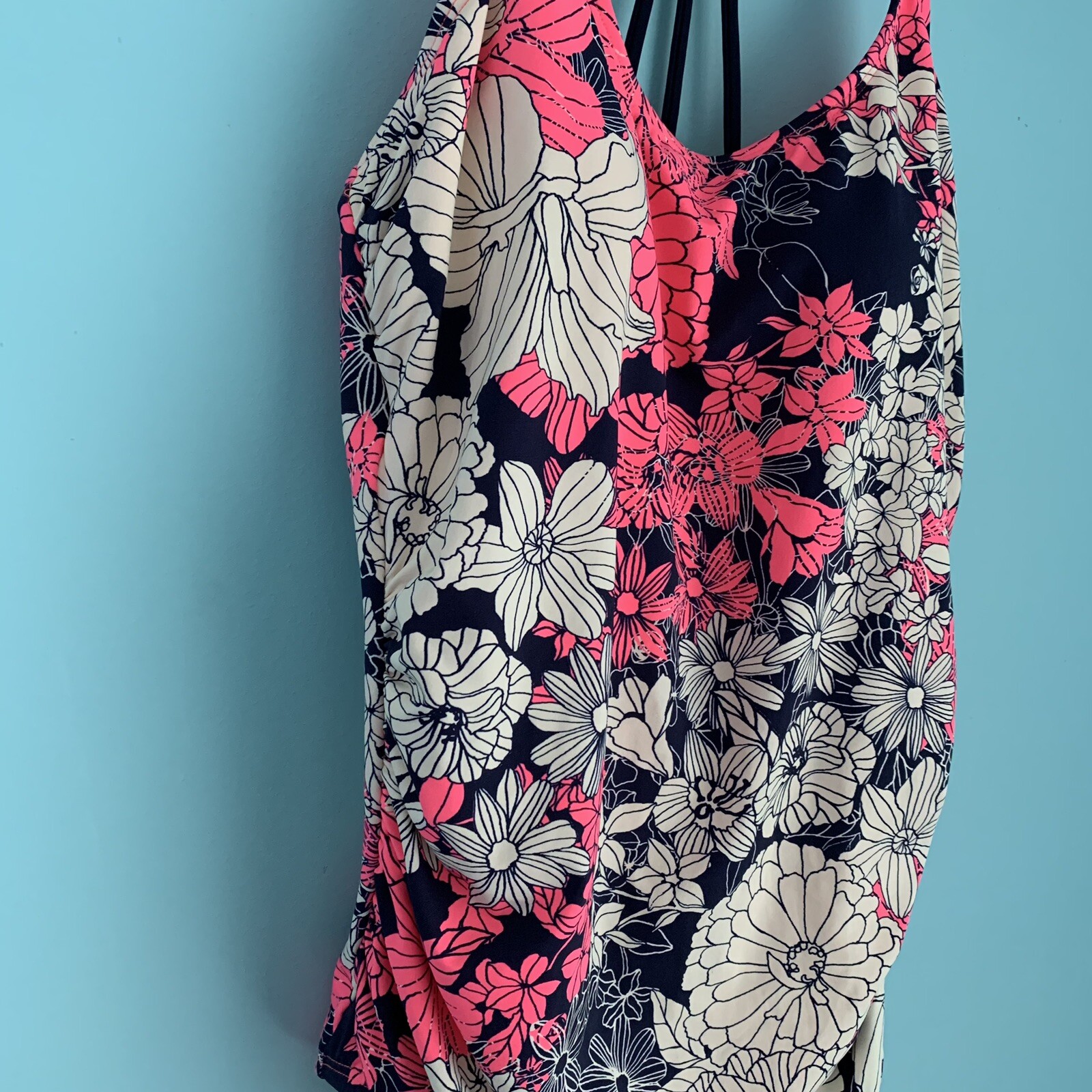 как выглядит Cole Of California Pink Floral Ruching Strappy Crochet One Piece Swimsuit 10 фото