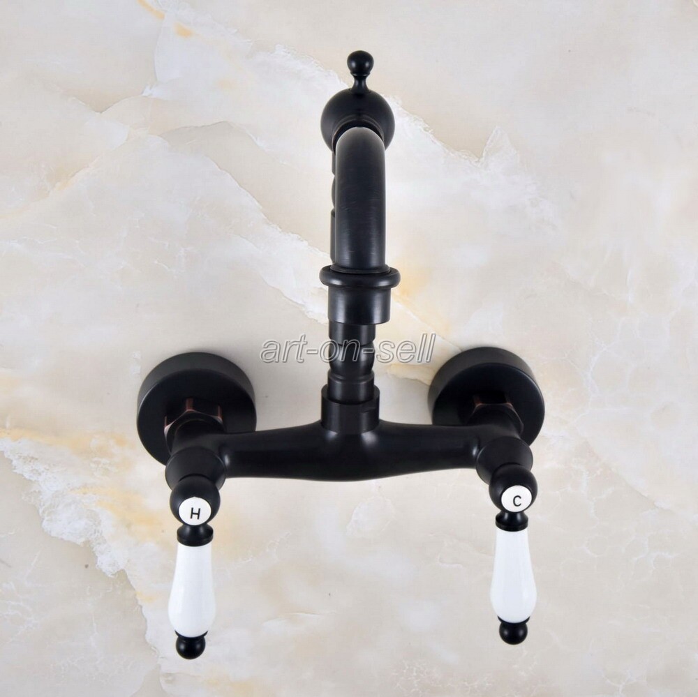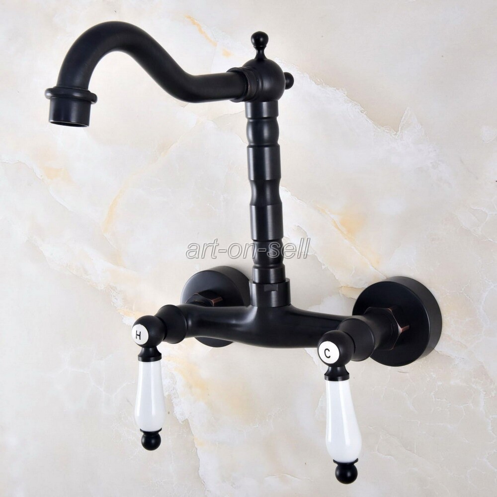 Oil Rubbed Brass Wall Mount Ceramic Handles Kitchen Bathroom Basin Sink Faucet