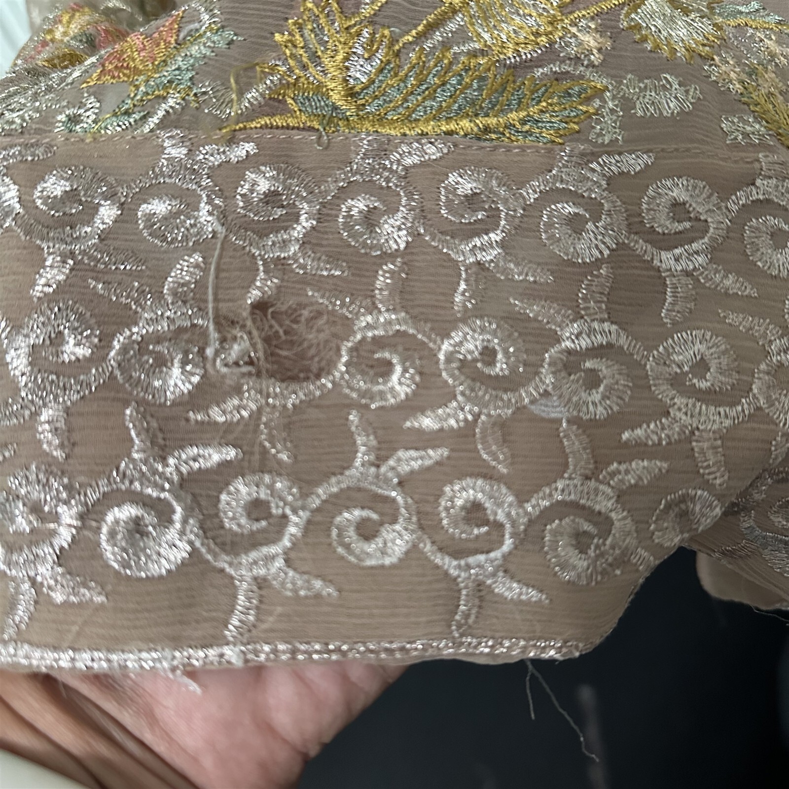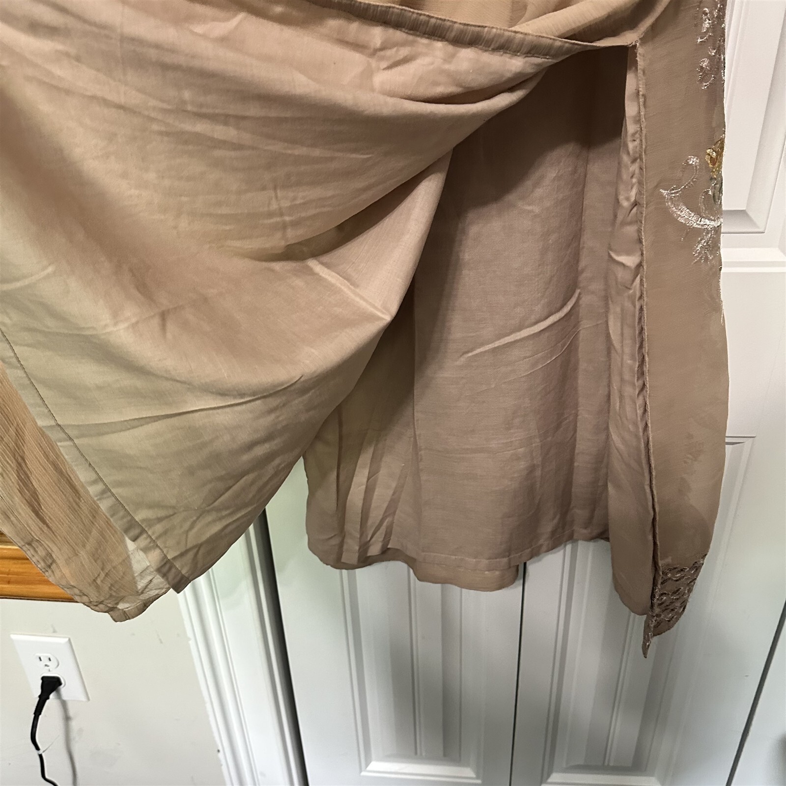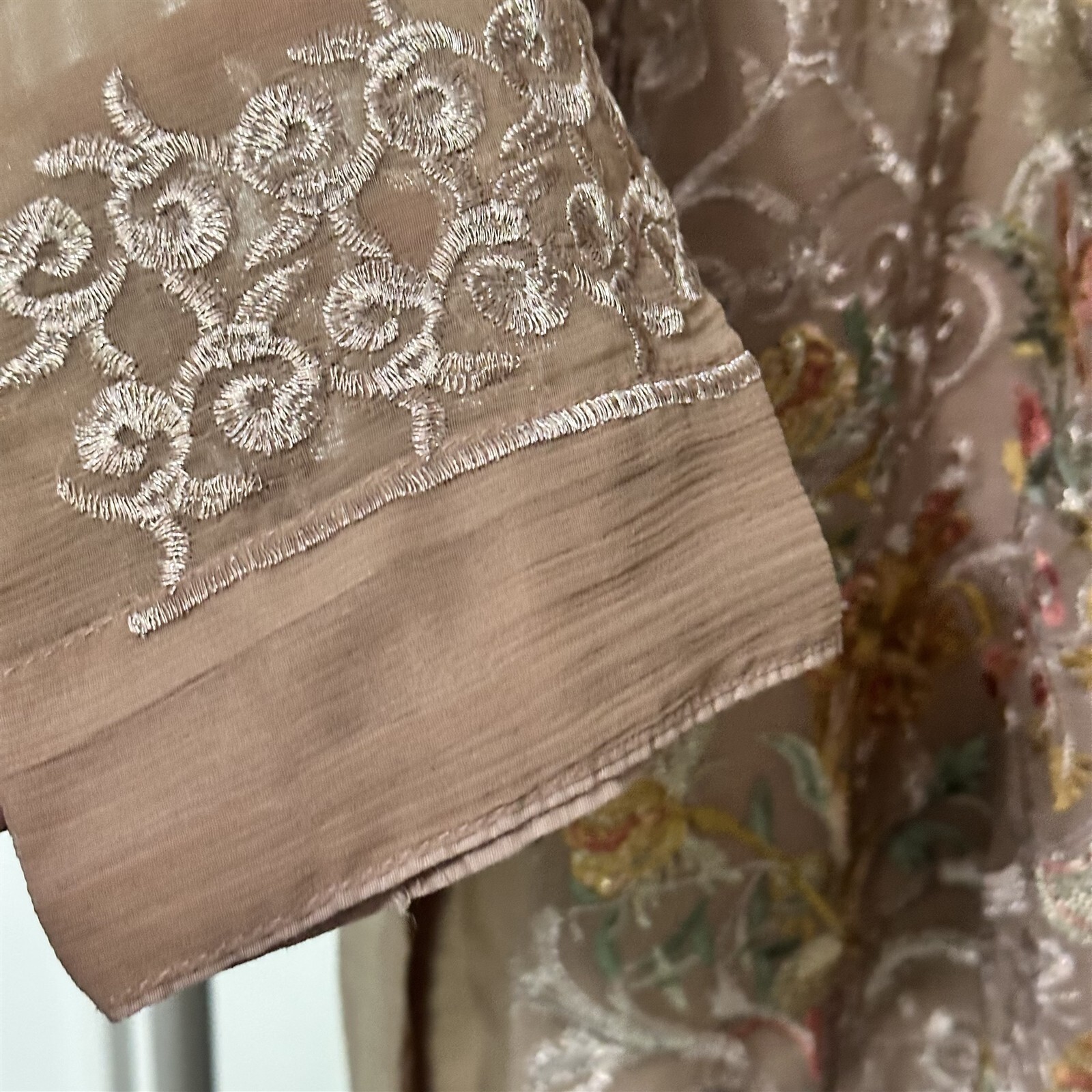 как выглядит Embroidered Tunic Sheer Lined Kurti beige side slits gauzy фото