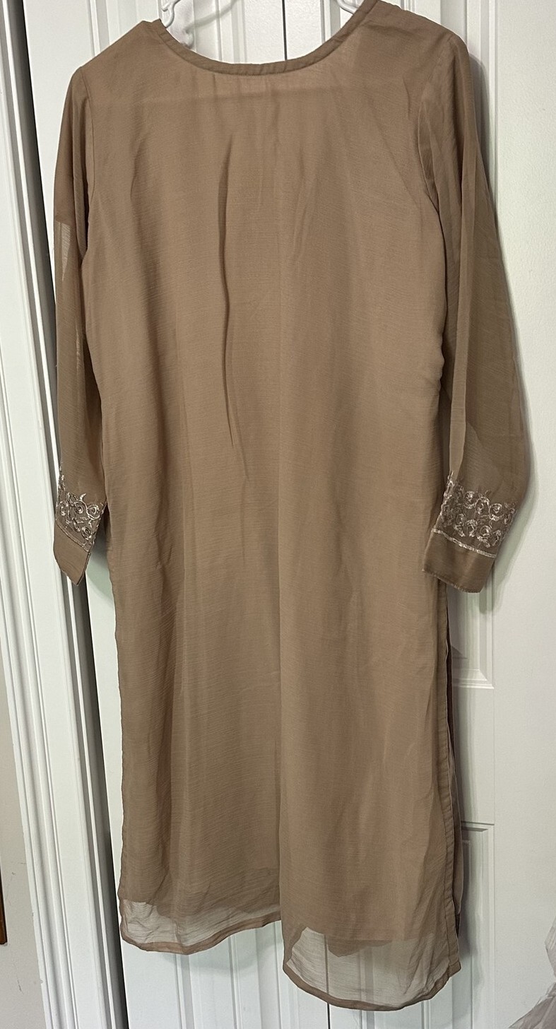 Embroidered Tunic Sheer Lined Kurti beige side slits gauzy