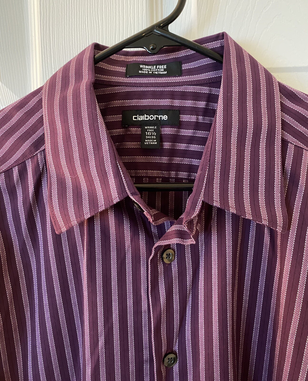 Claiborne Dress Shirt Mens Size 16 1/2 - 34/35 Striped Long Sleeve Wrinkle Free