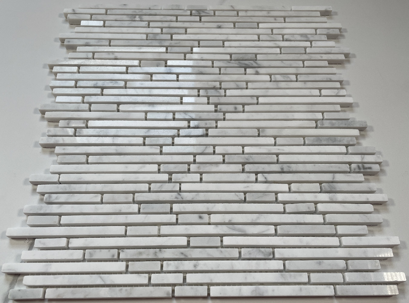 как выглядит C79XP Carrara Marble Waterfall Heavy Rain Matchstick Mosaic Tile Polished фото