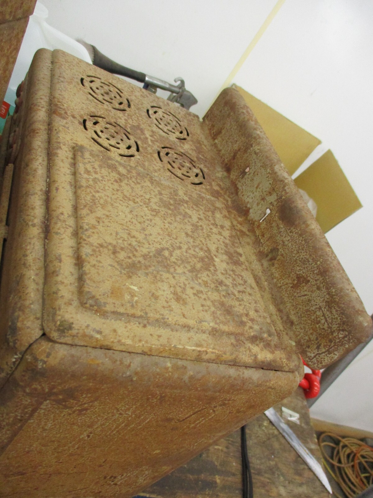 как выглядит SET of 3 Vintage Tin STOVE REFRIGATOR SINK Cabinet San Diego Jr Doll Furniture фото