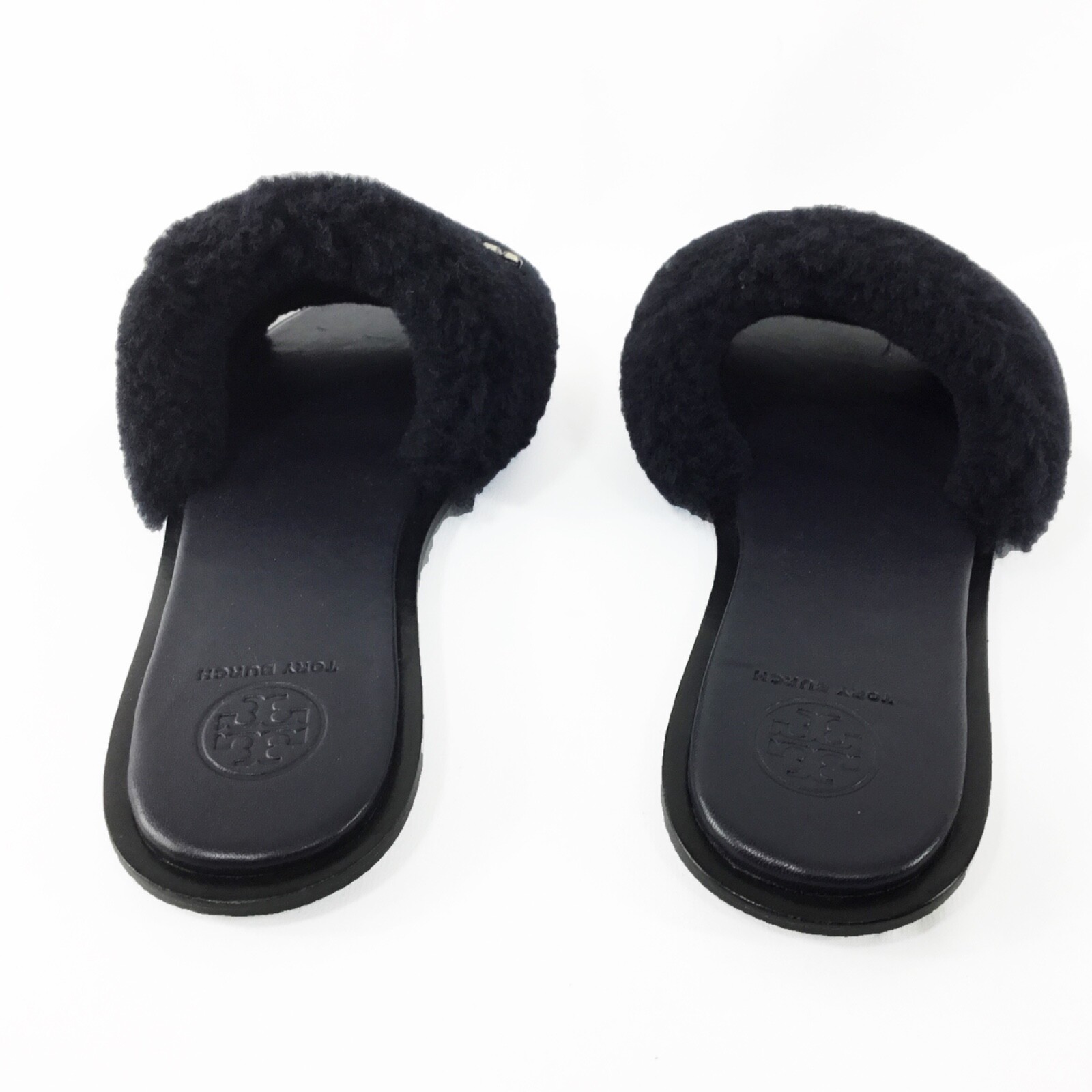 как выглядит Preowned TORY BURCH Aspen Embellished Shearling Slides Black Sz 7 SRP 298 фото