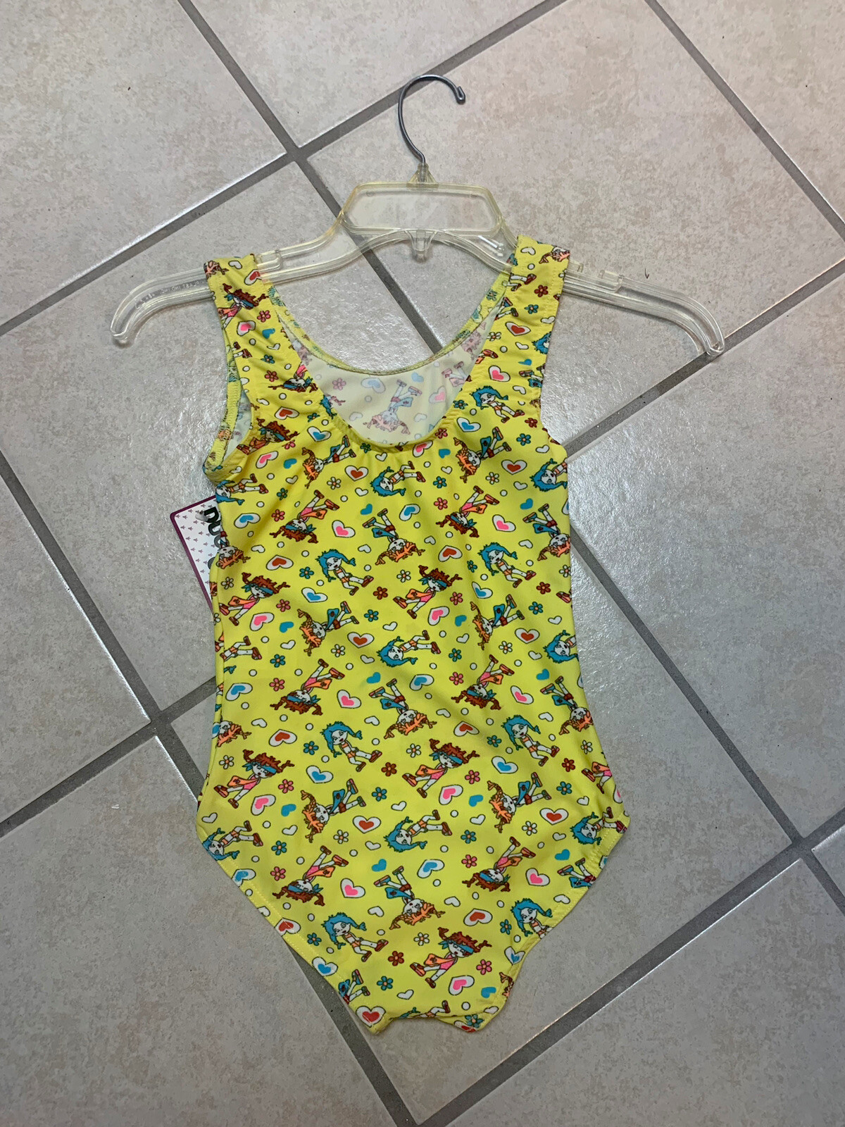 Girls Medium 8/10 Yellow Tank Style Gymnastics Or Dance Leotard Bodysuit NWT