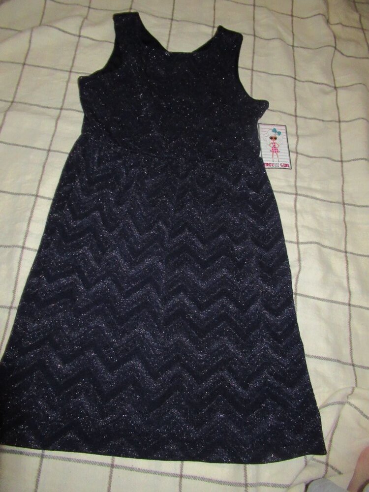 nwt Trixxi girl sparkly navy knit bow back dress girls XL 14 free ship US