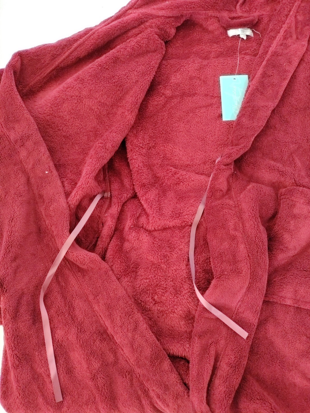 Alexander Del Rossa S/M Men's Maroon Fleece Plush Long Belted Hooded Robe New