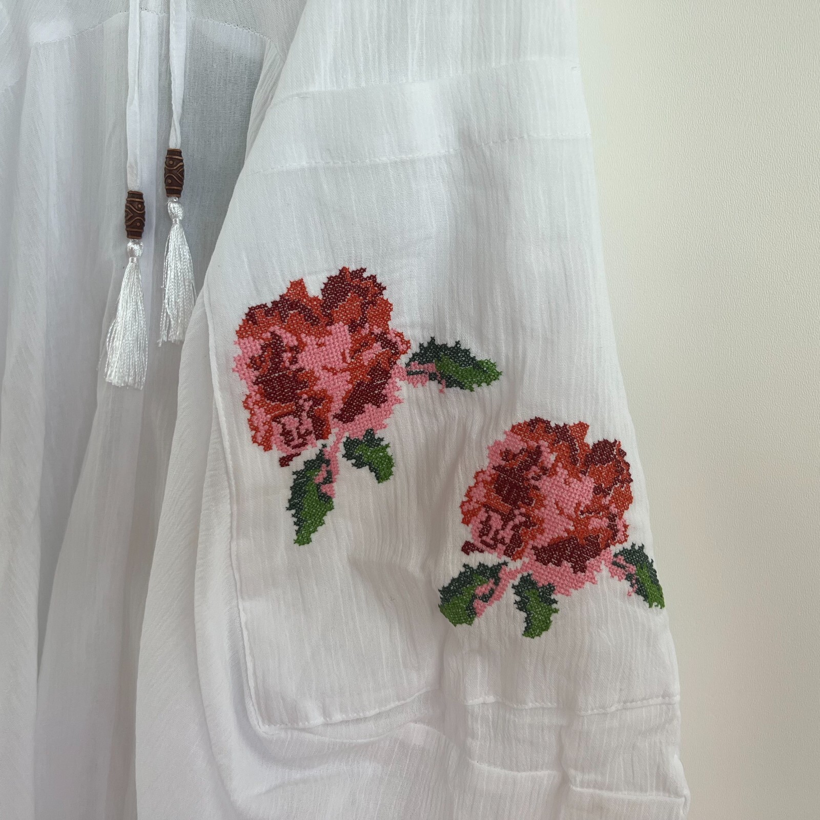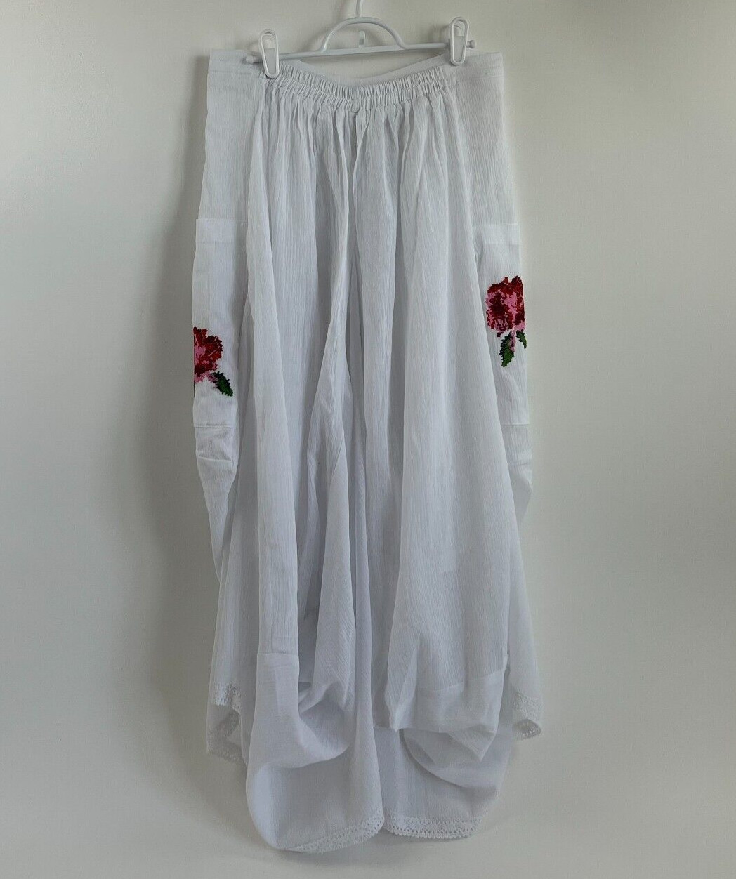 White by Nature Women's 100 Cotton Asymmetric Embroidered Skirt w Pockets S NWT