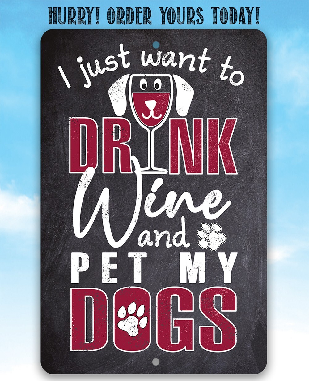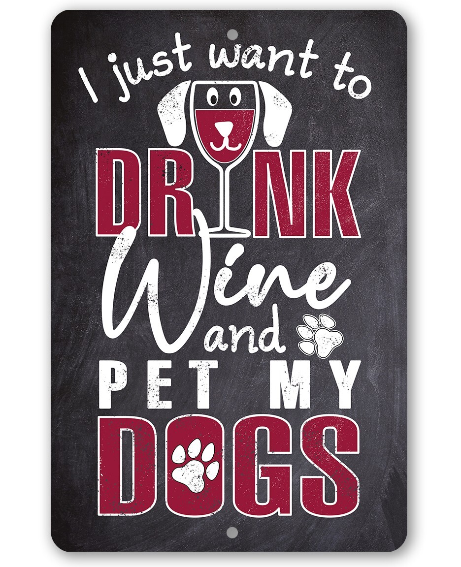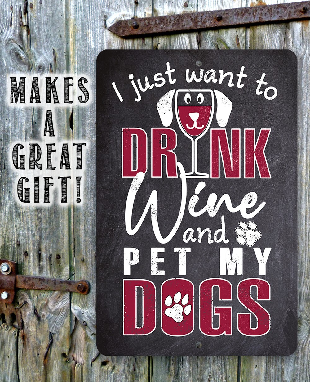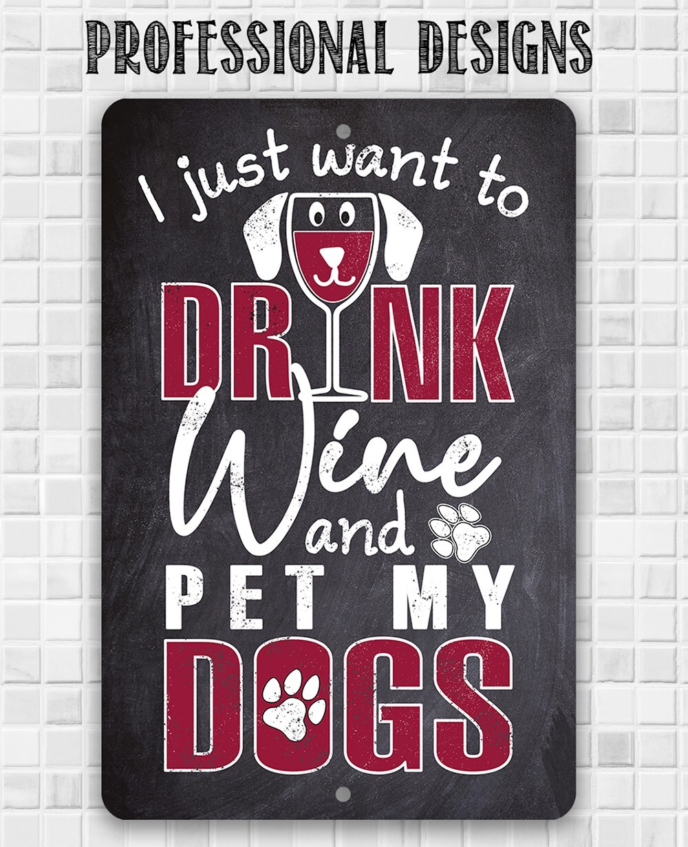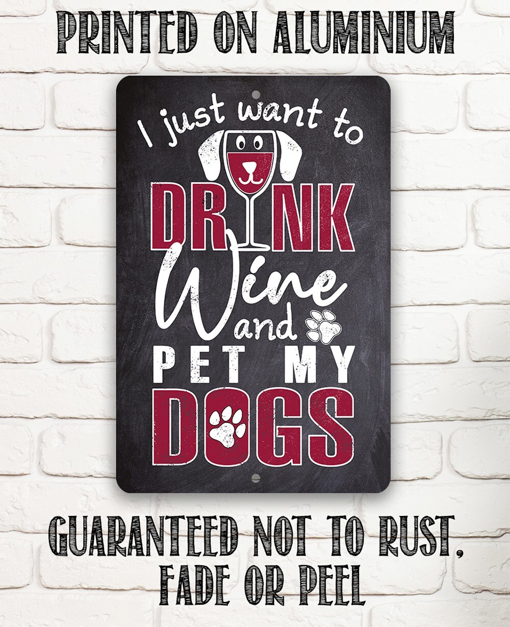 I Just Want To Wine, Pet Dogs Metal Wine Sign Great Bar Decor for Dog Owners