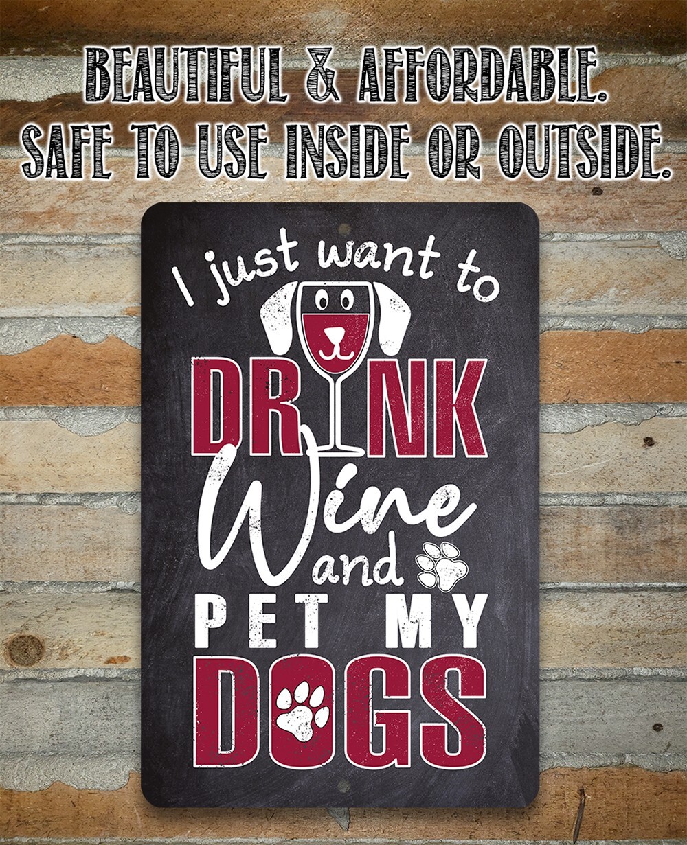 • I Just Want To Wine, Pet Dogs Metal Wine Sign Great Bar Decor for Dog Owners