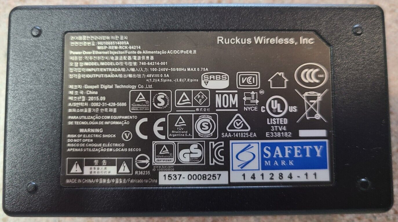 Ruckus Arris ZoneFlex PoE Injector 740-64214-001 Ethernet 48V