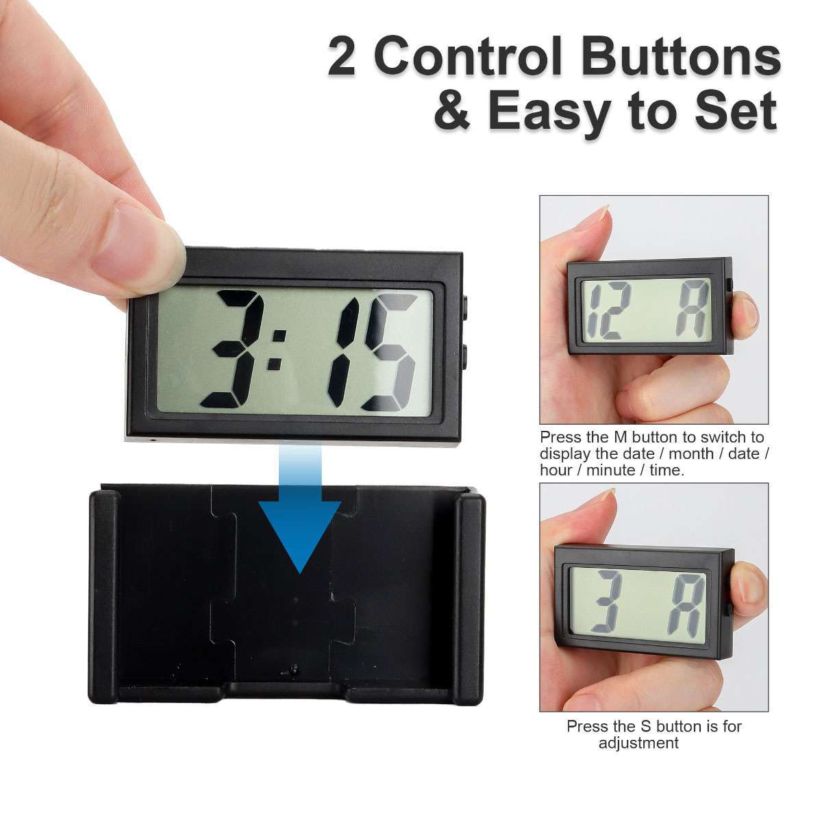 2/4x Portable Mini Car Dashboard Digital Clock for Vehicle Large LCD Time Screen