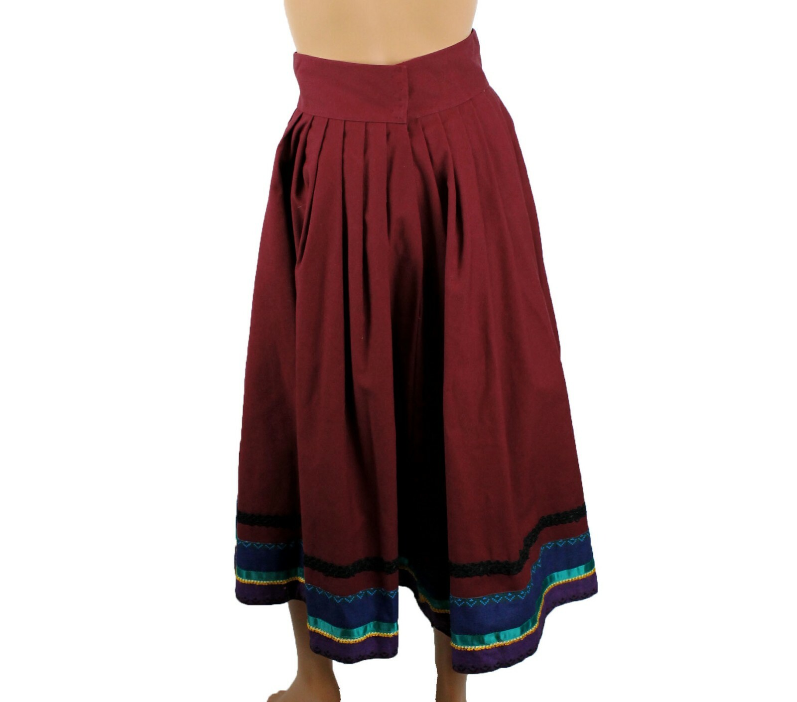 как выглядит Prairie Girl Skirt S Vintage Dark Burgundy Red Striped Pleated Peasant Costume фото