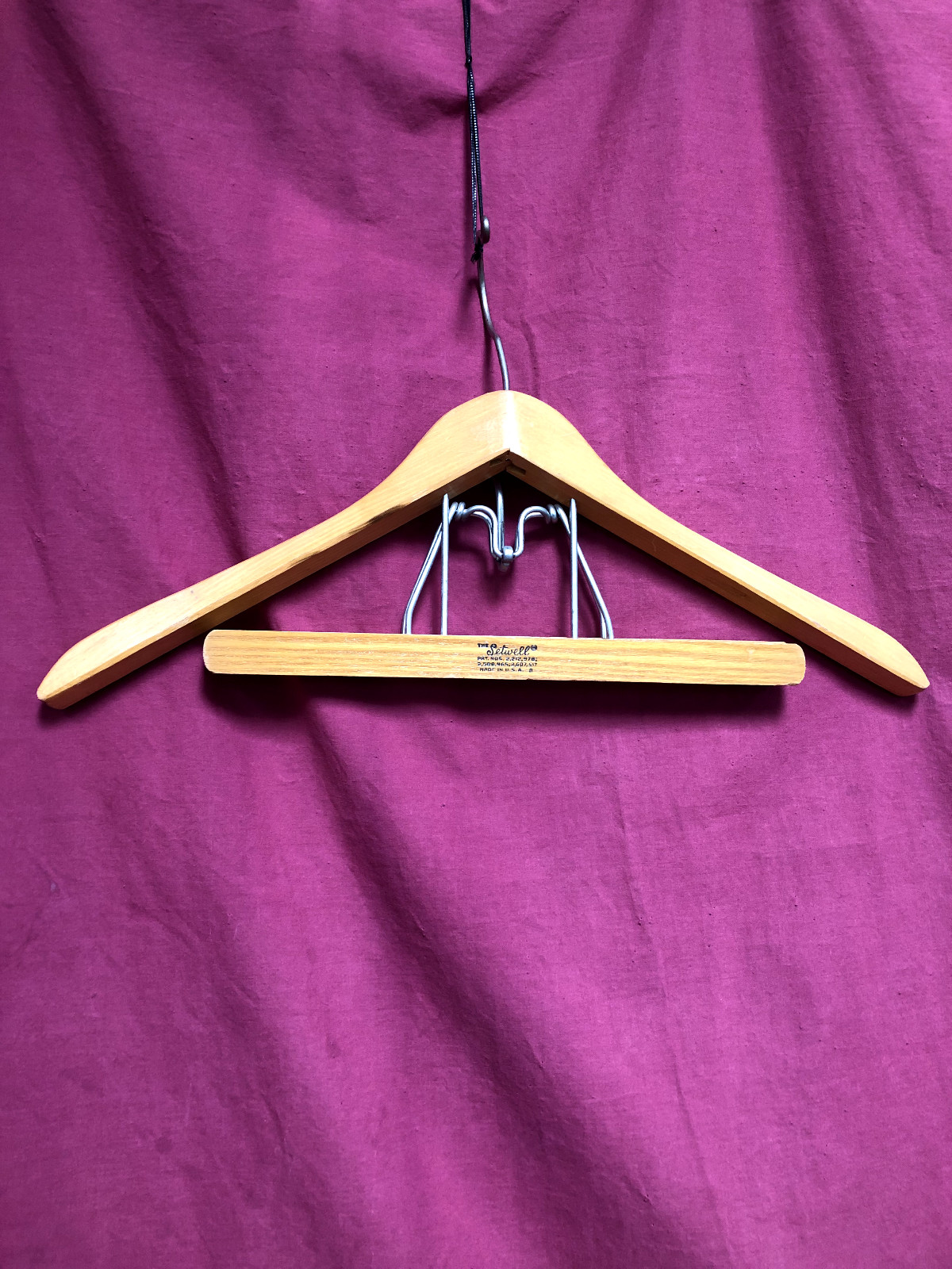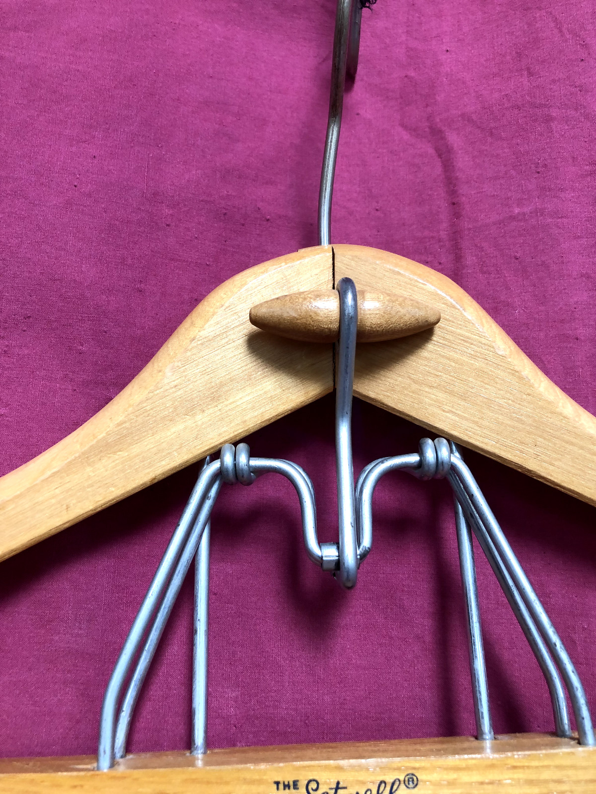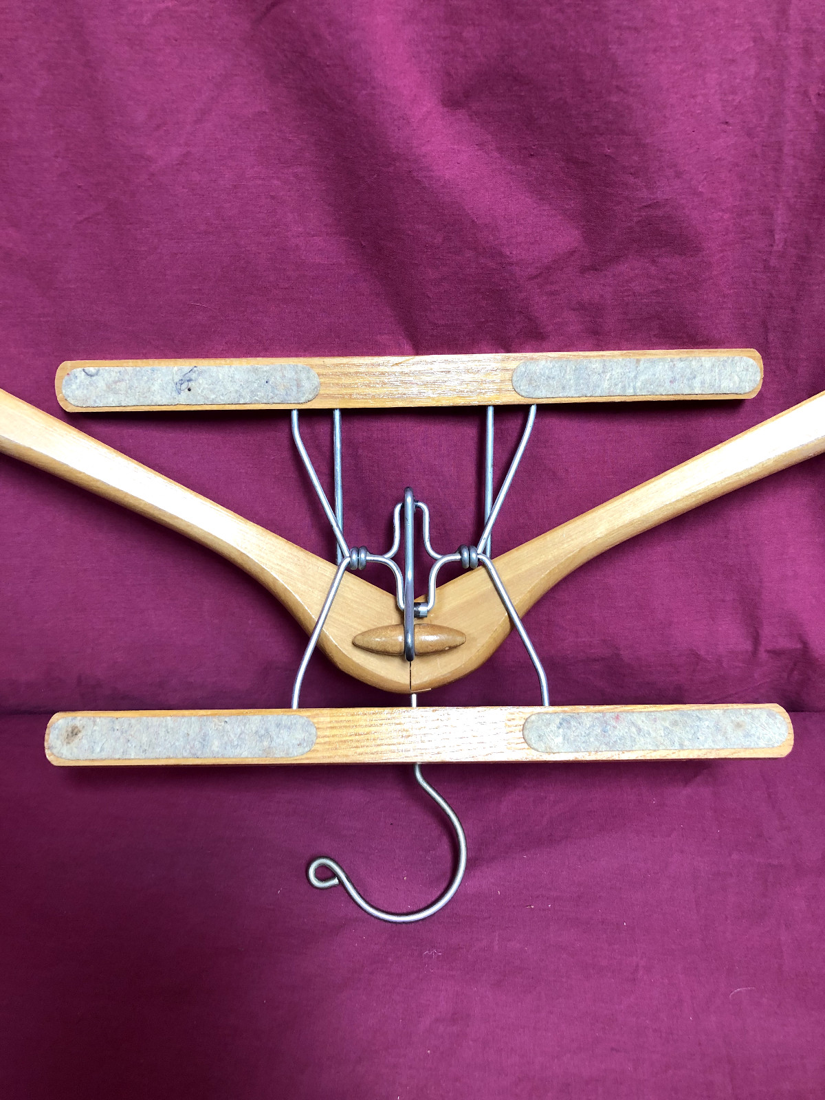 VINTAGE SETWELL WOOD CLOTHING HANGER w PADDED TROUSER HANGER - WORKS PERFECTLY