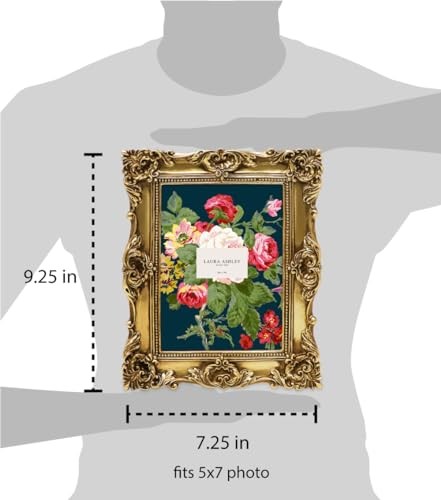 как выглядит Laura Ashley 5x7 Gold Ornate Textured Hand-Crafted Resin Picture Frame with фото
