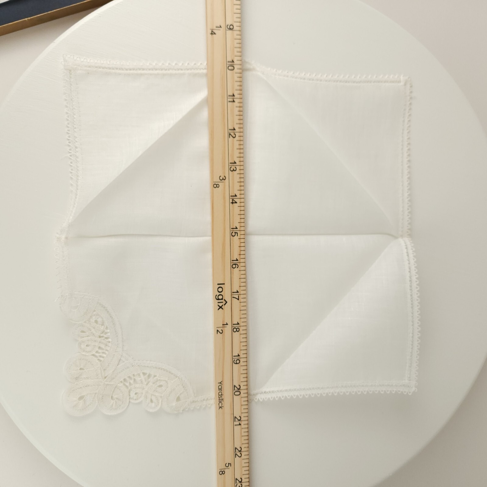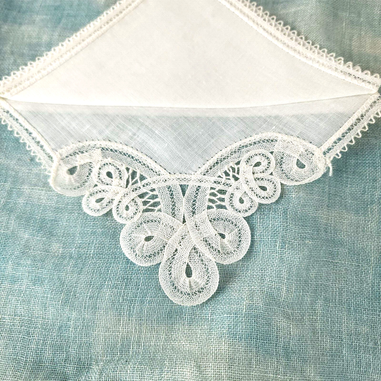 • Vintage 60s White Belgian Lace and Linen Handmade Wedding Bridal Handkerchief