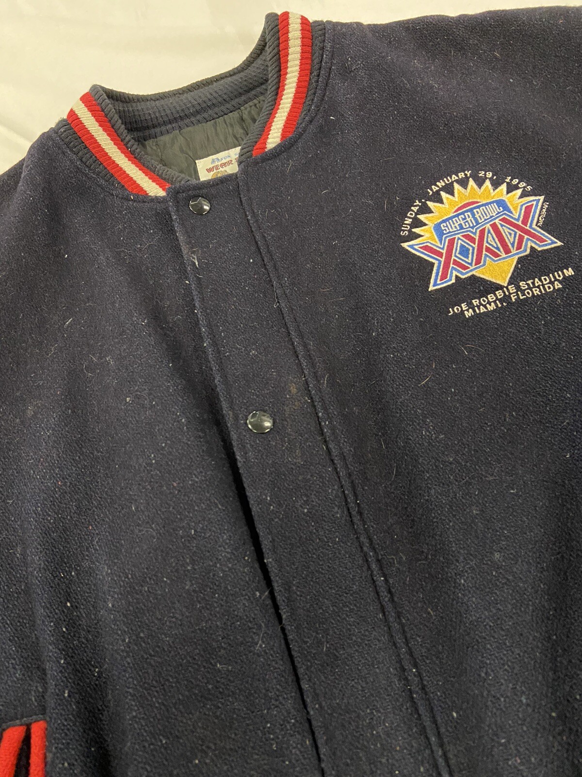 как выглядит Vintage Super Bowl XXIX Leather Wool Varsity Bomber Jacket Size XL NFL фото