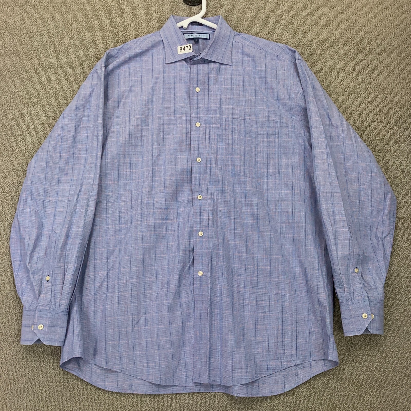 Tommy Hilfiger Button Up Shirt Mens 17 34 35 XL Long Sleeve Blue Check Cotton