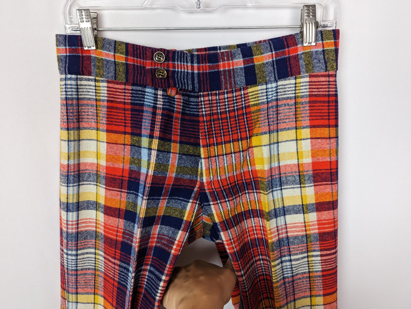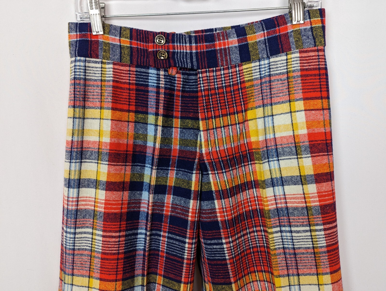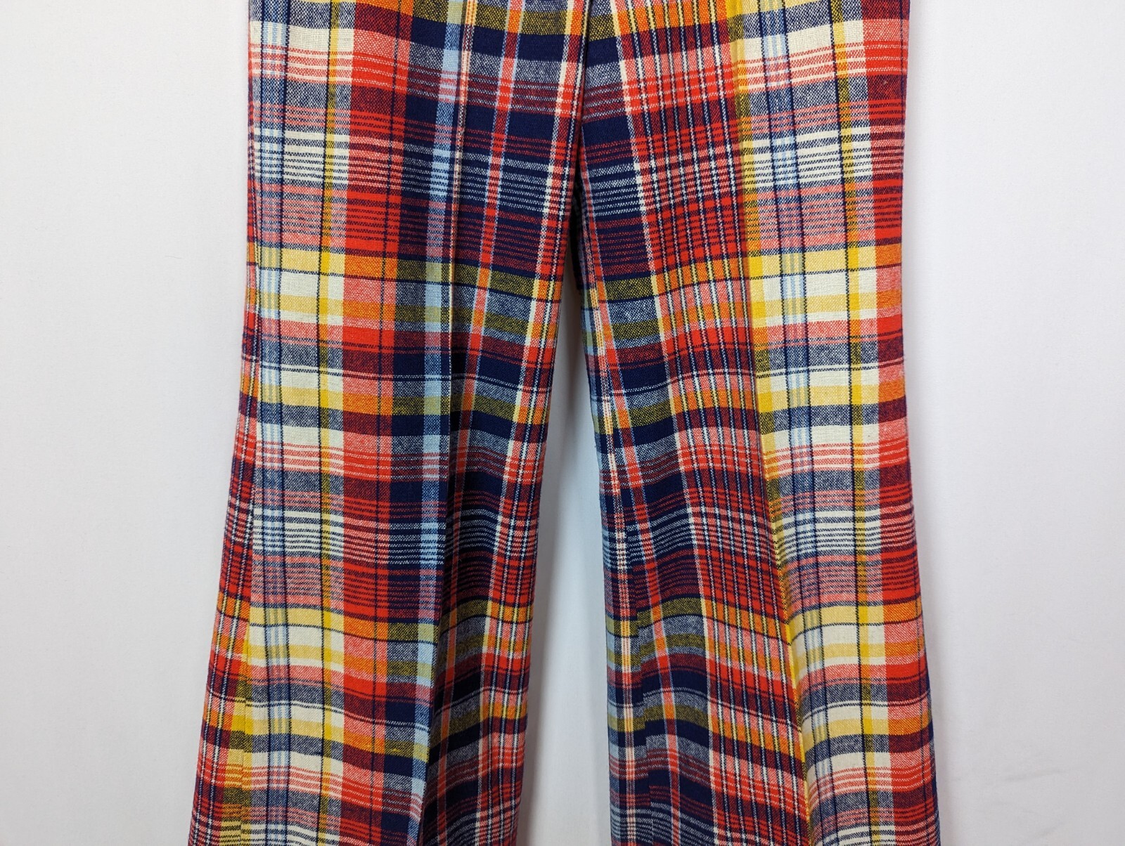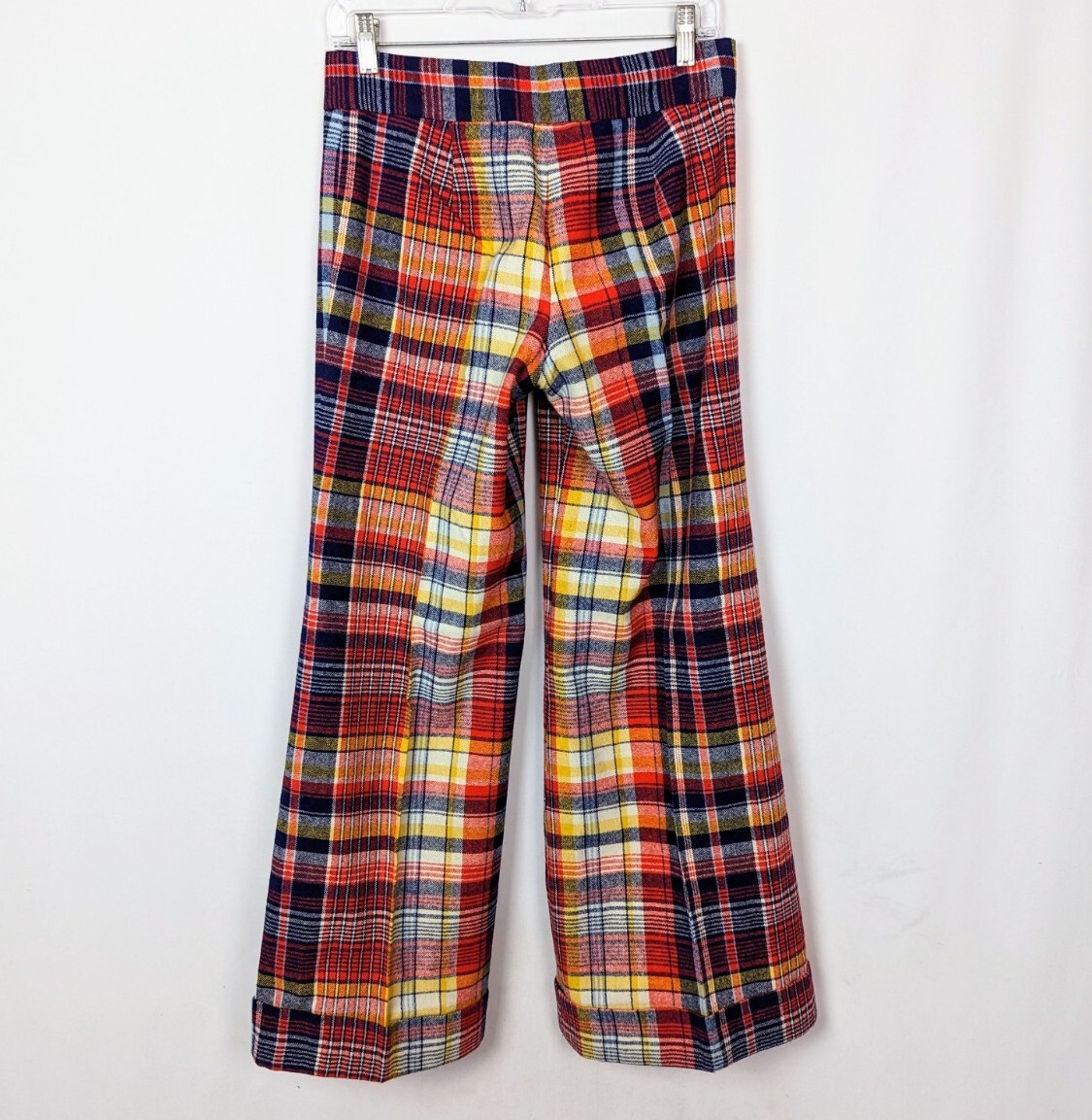 70's Vintage Garland 10 Multicolored Checkered Hi Waisted Bell Bottom Pants Wool