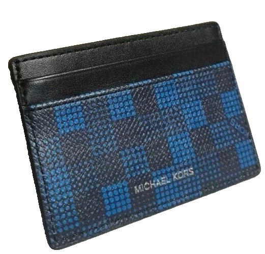 Michael Kors Graphic Check Card Case ID Wallet Midnight Pop Blue 36S0LGFD1R New