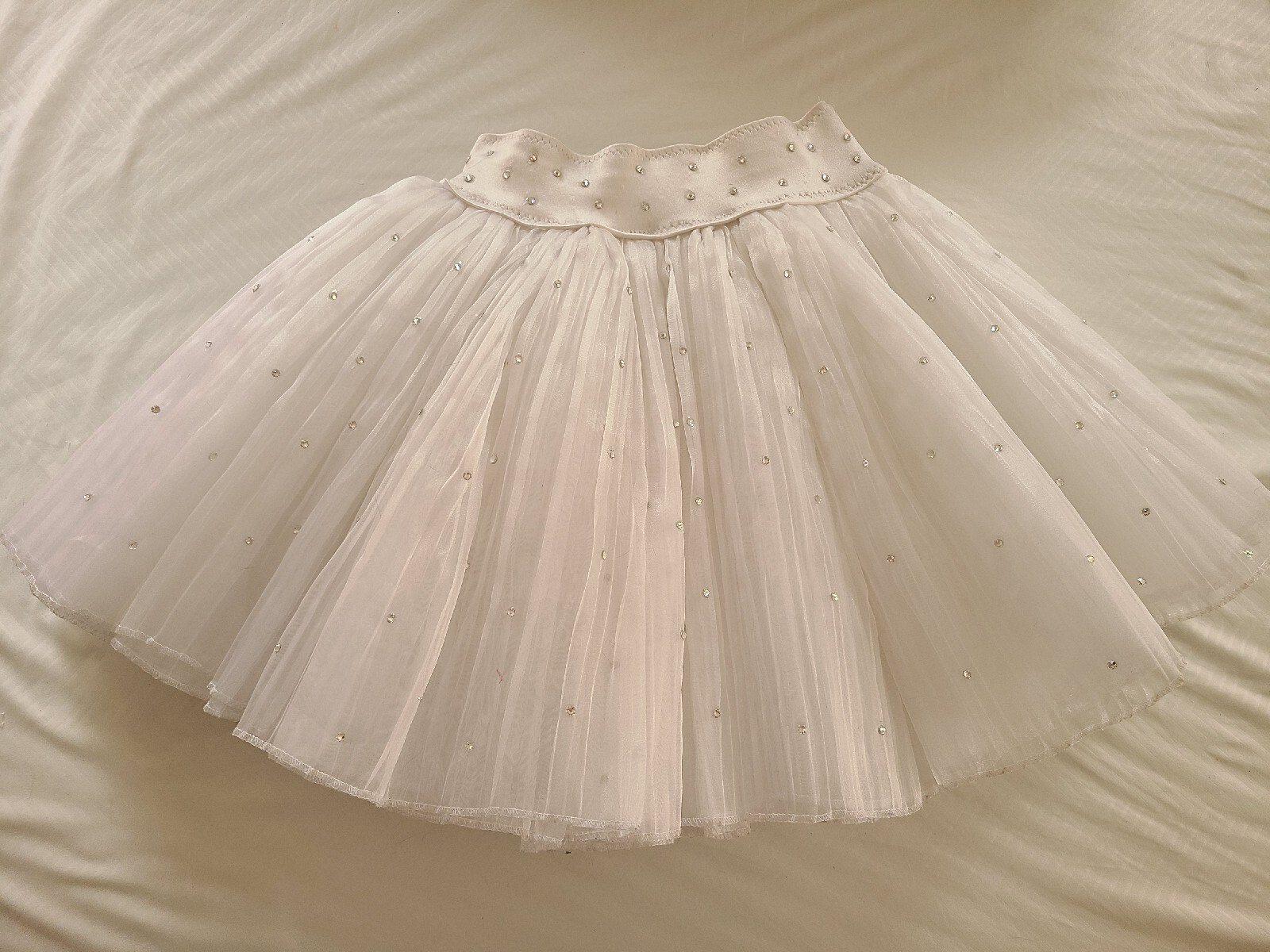 LC 10-12 Girls White Competition Jazz Dance Outfit Beaded Handmade 2 Piece