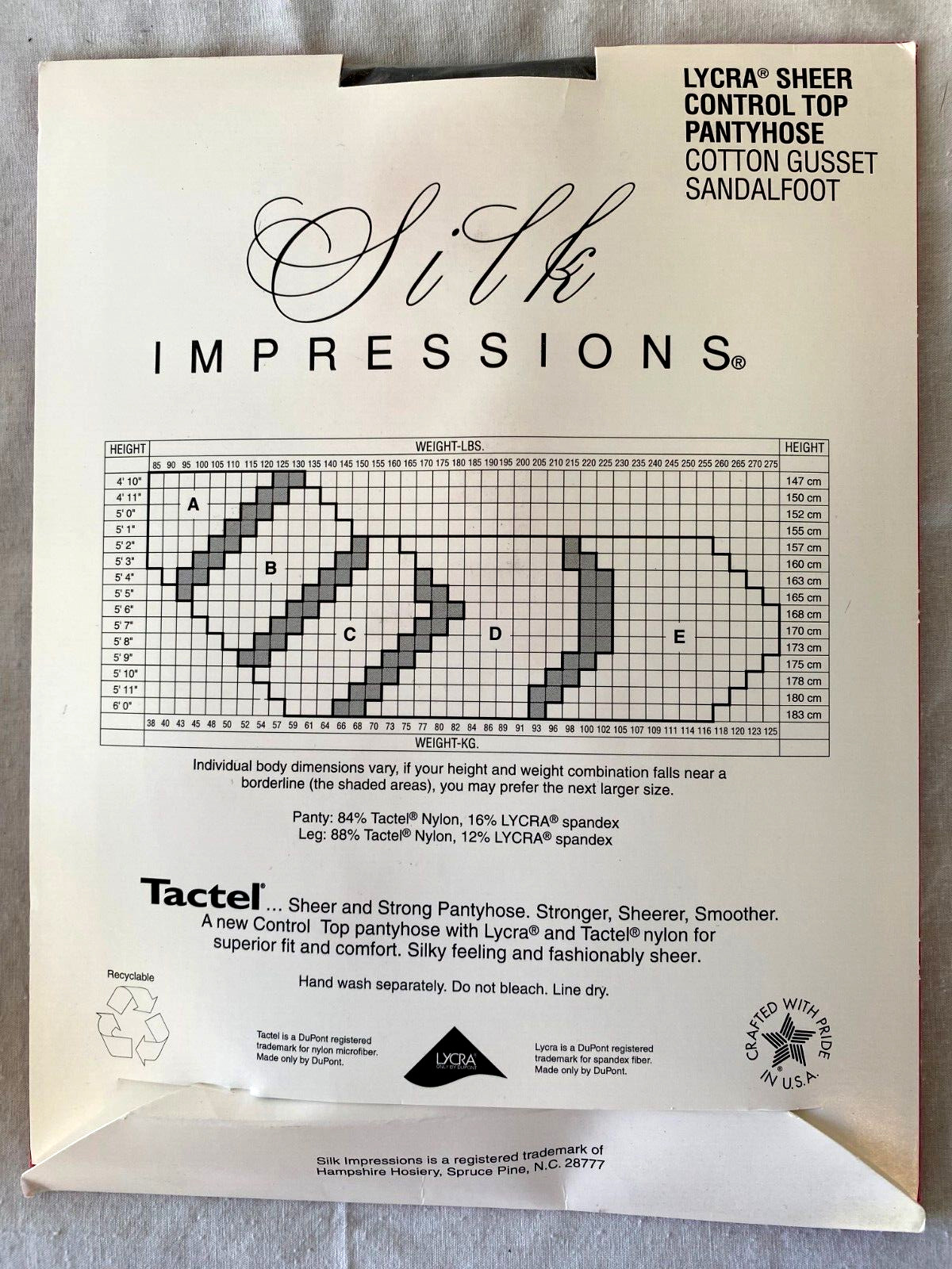 4 PRS..VTG SILK IMPRESSIONS..LYCRA SHEER..PANTYHOSE..DIF COLORS..XXL / E..NIP