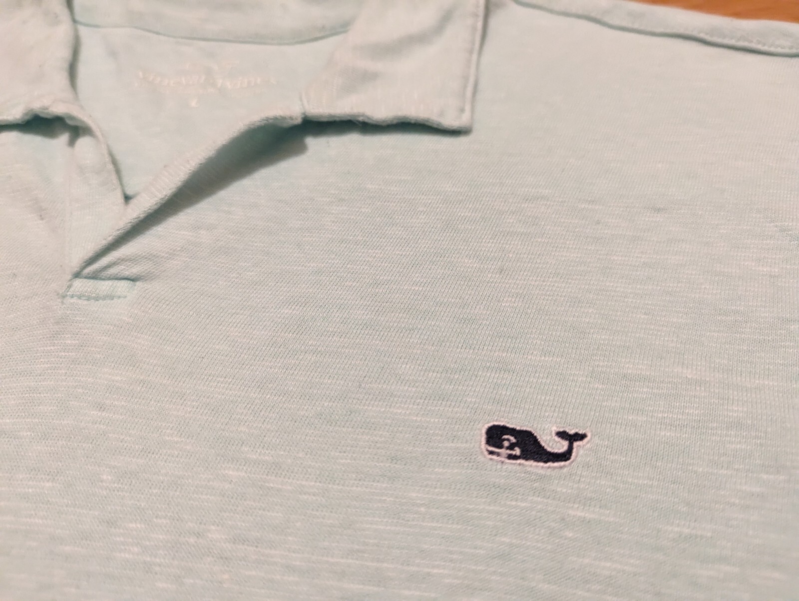 как выглядит VINEYARD VINES POLO SHIRT SIZE LARGE MEN LINEN COTTON BLEND LIGHT BLUE GREEN фото