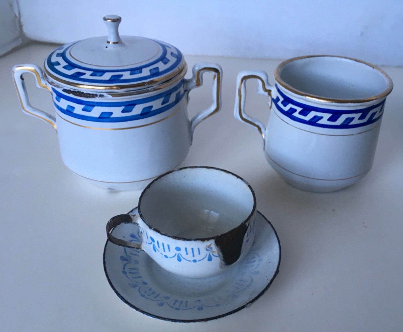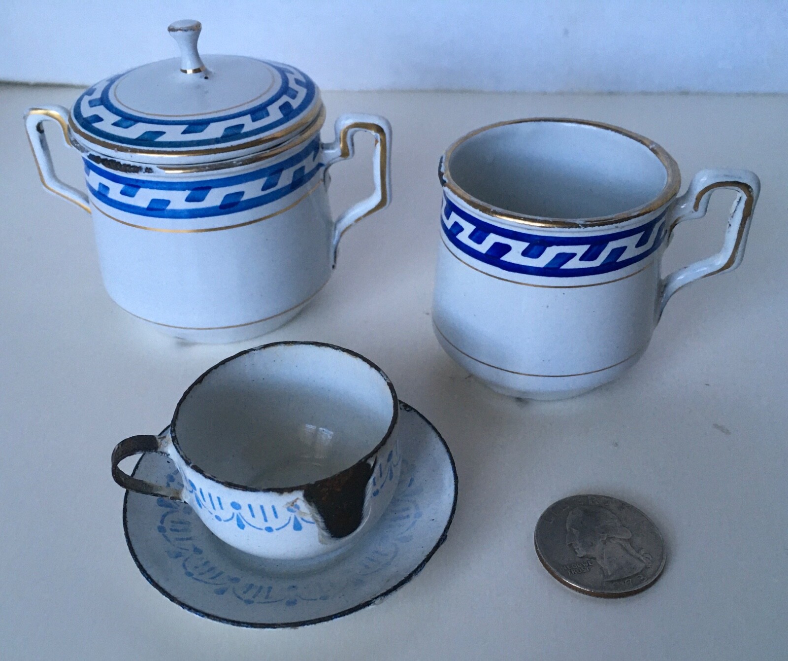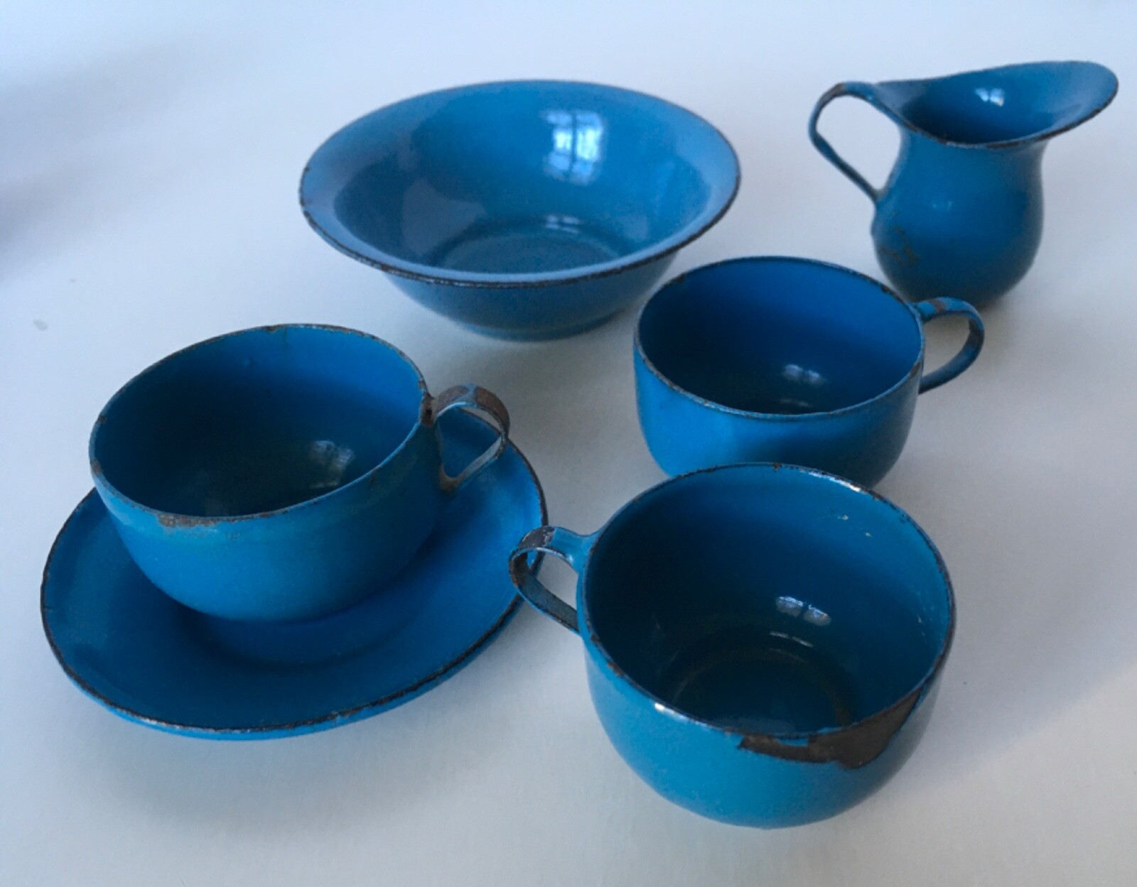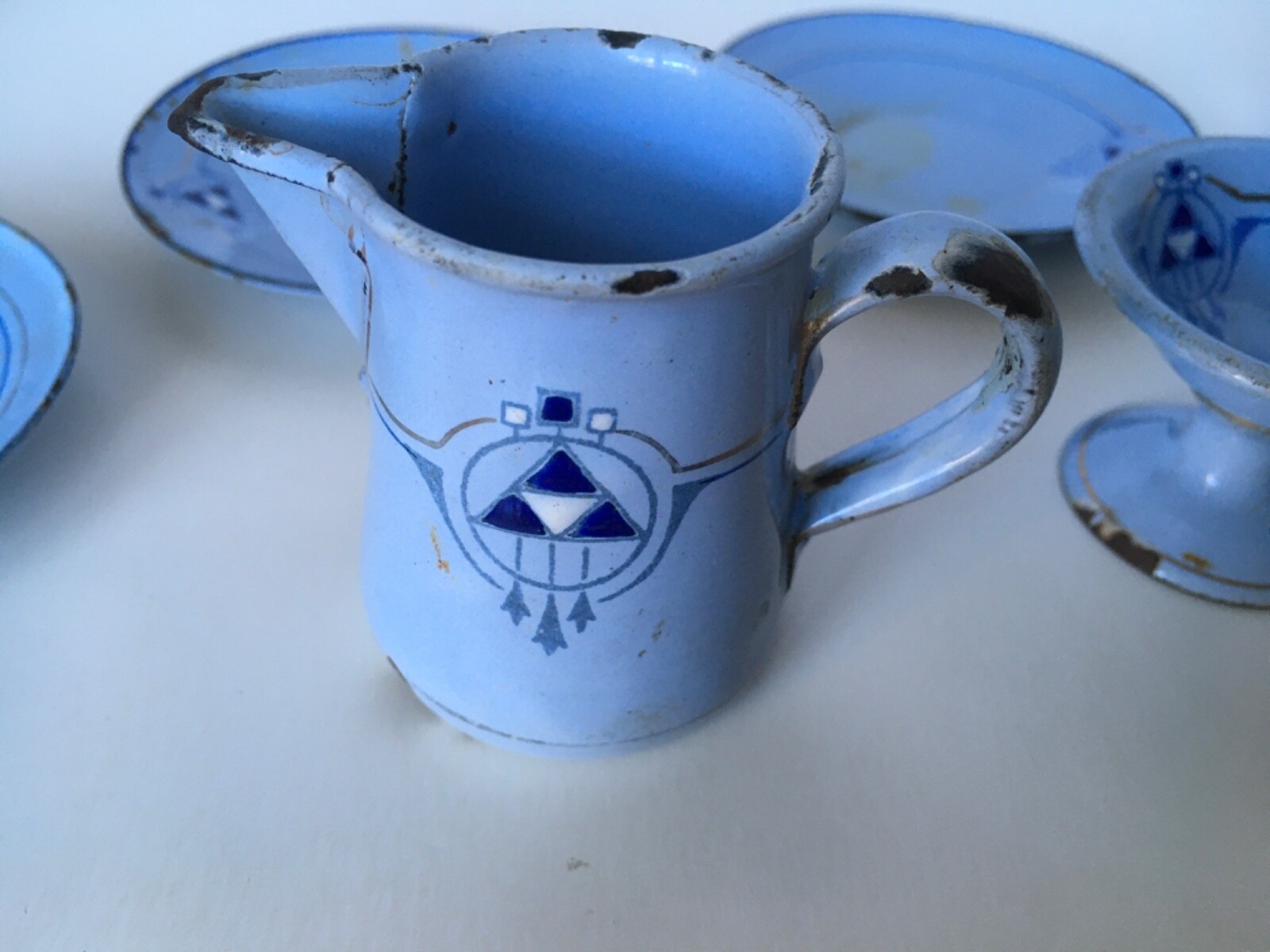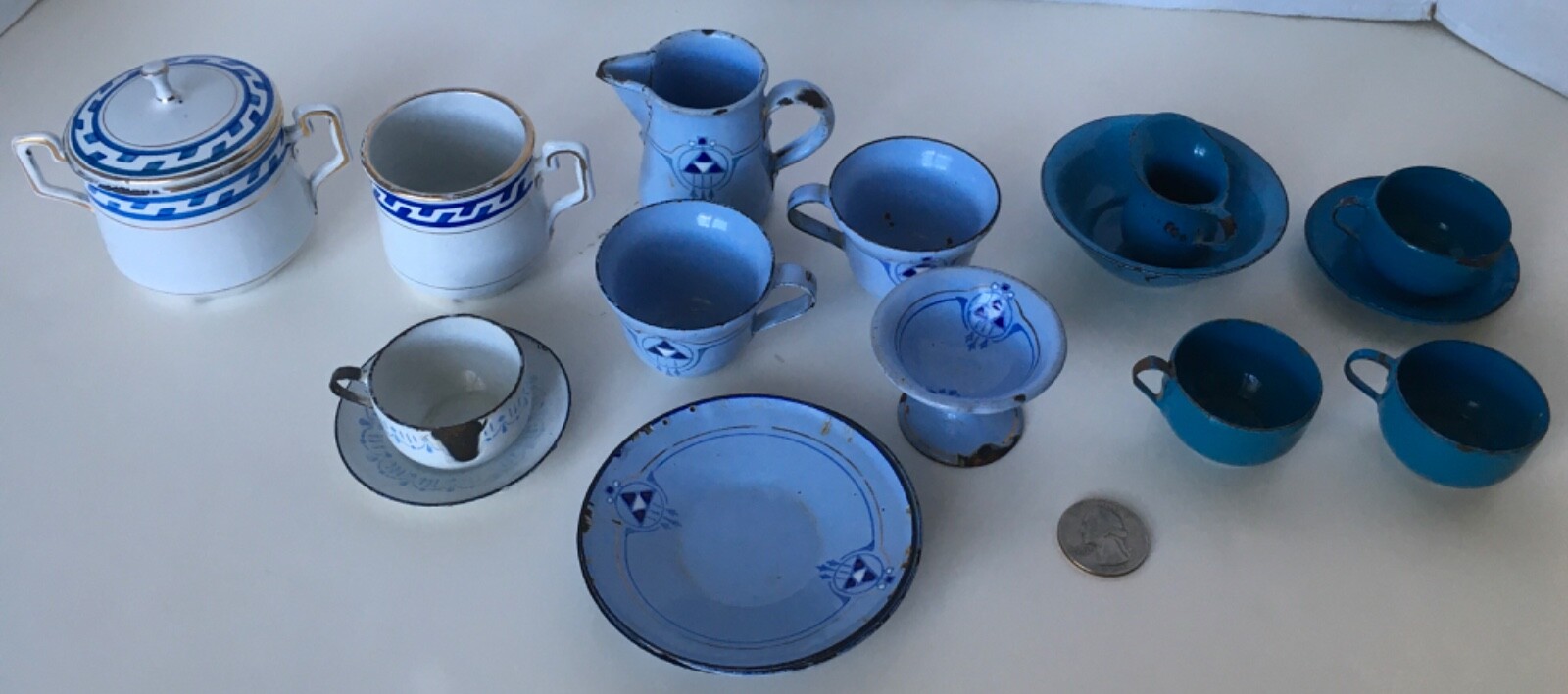 как выглядит Lot of 18 Pieces ANTIQUE CHILDS TOY ENAMELWARE Dishes, cups,saucers, etc. фото