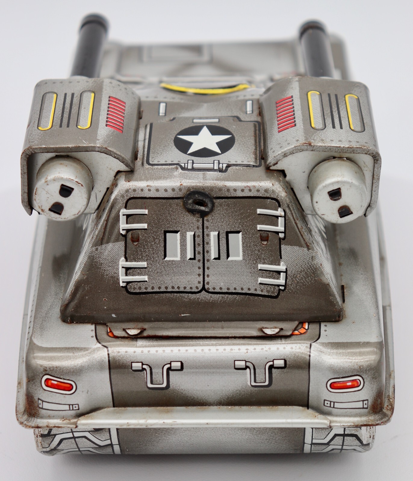 Vintage Tin Litho Friction US Army Tank M-105 Toy 2 Guns Japan Hisimo HTC