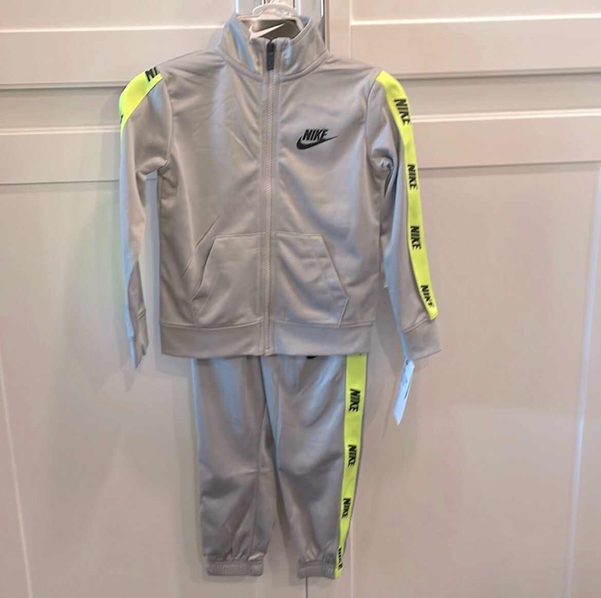 как выглядит Nike Kids Boys Logo Taping Jacket Pants Track Set - Size 7 Light Smoke Grey фото