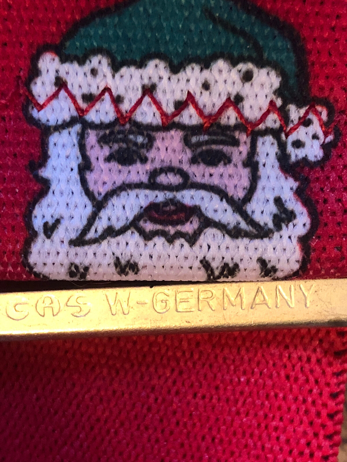 Vintage CAS West Germany Santa Claus Elastic Red Suspenders Brass Christmas