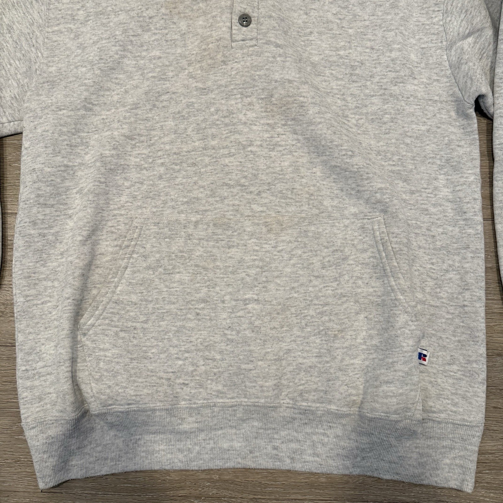 Vintage Russell Athletic Hoodie Men s XL M Gray Henley Sweatshirt Made in USA