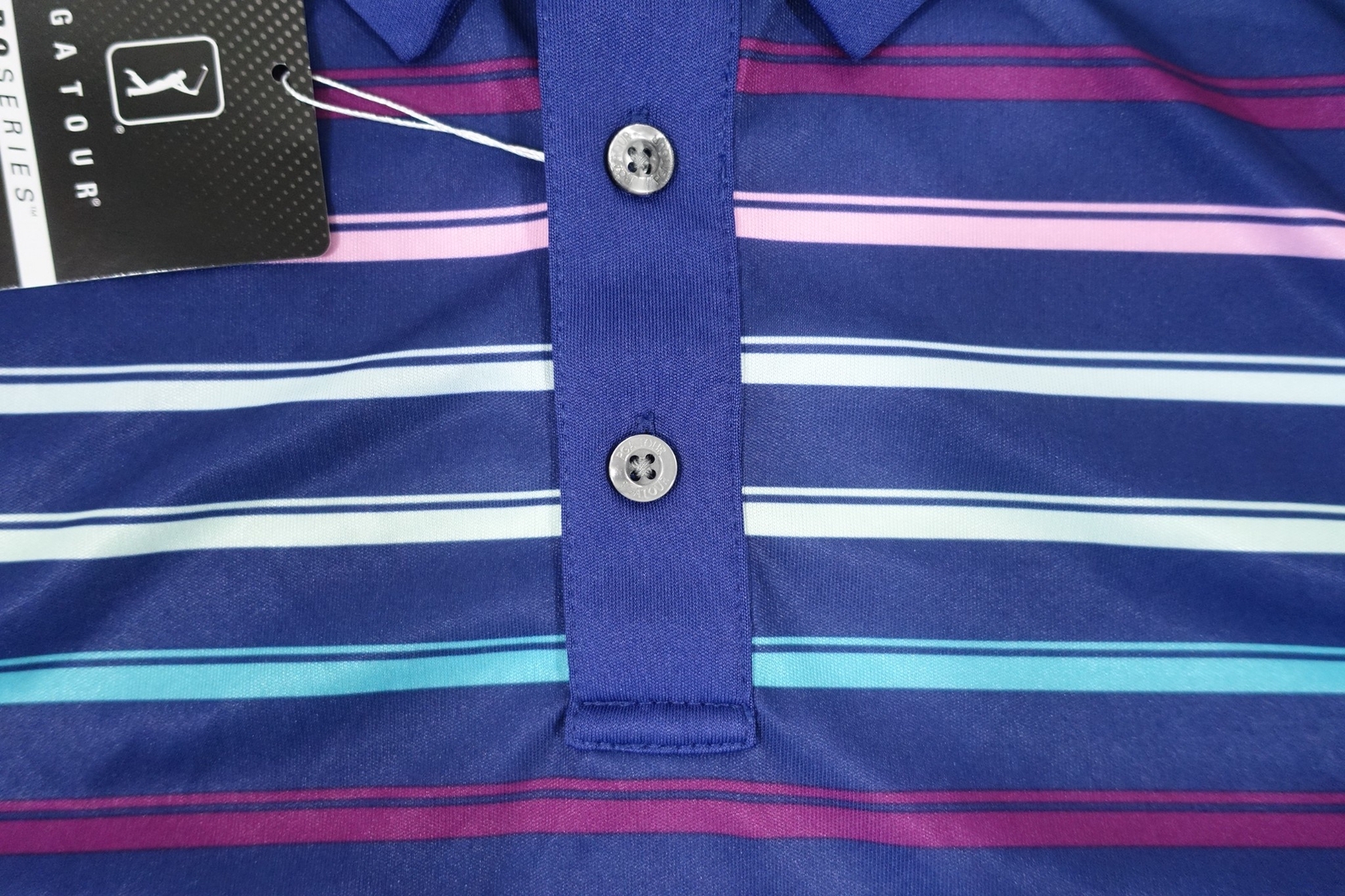как выглядит PGA TOUR PRO SERIES STRIPED BLUE GREEN LARGE GOLF STRETCH POLO SHIRT MENS NEW фото