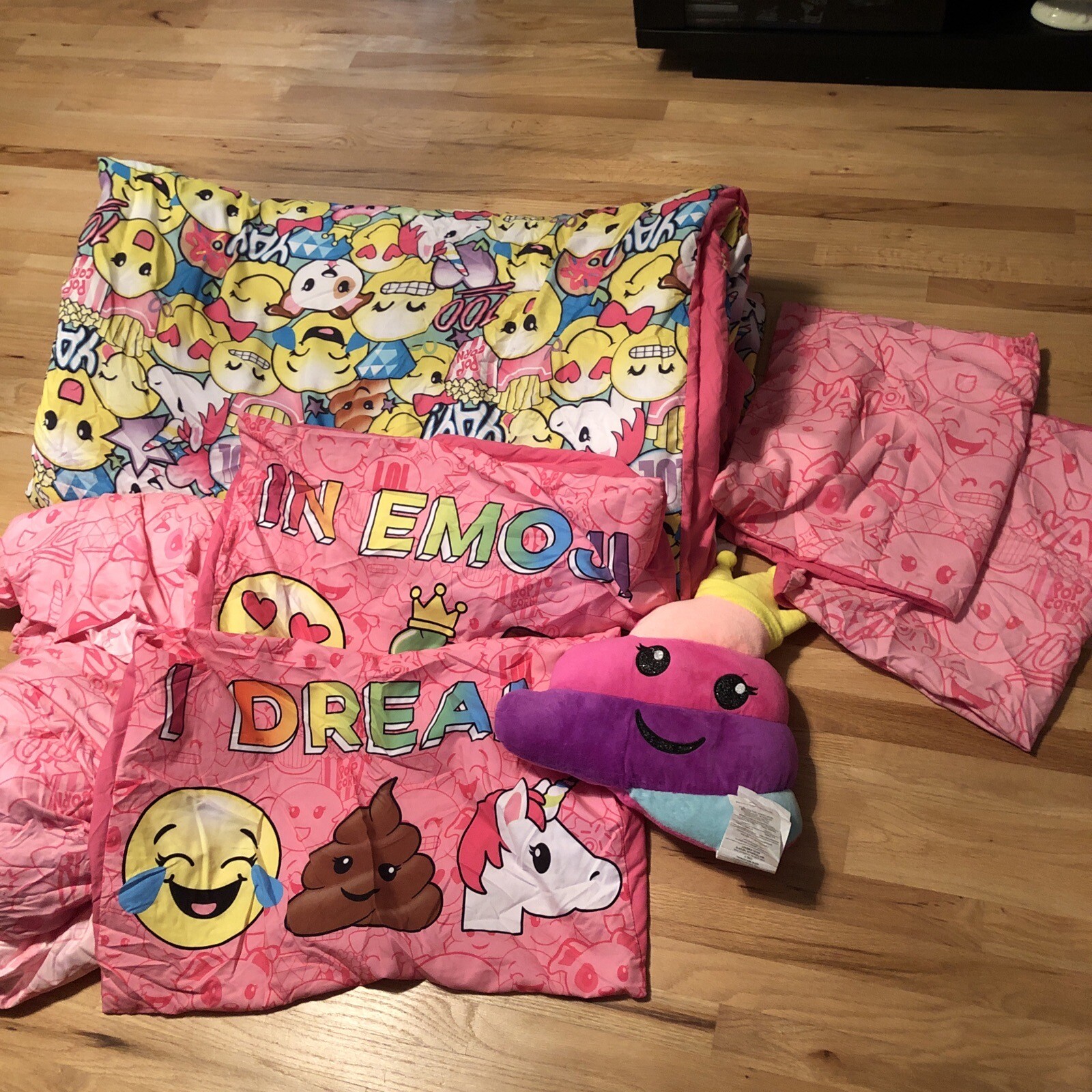JUSTICE Queen Poo Full COMFORTER EMOJI SET UNICORNS/PUPPIES FLAT FITTED SHEETS