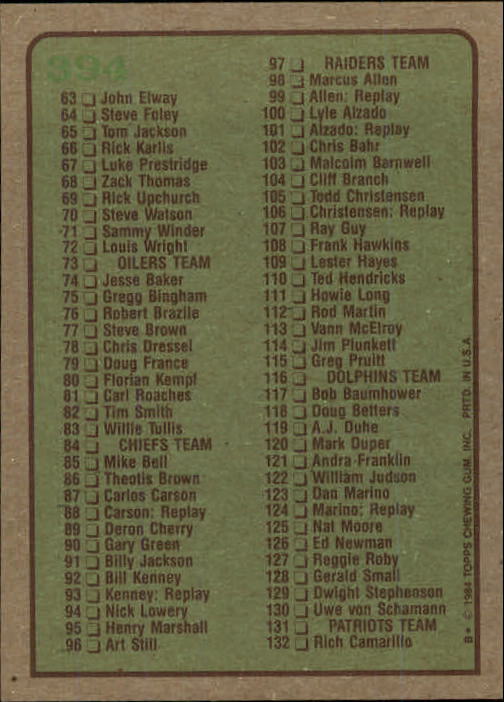 как выглядит 1984 Topps Football Card Pick Base 167-396 фото
