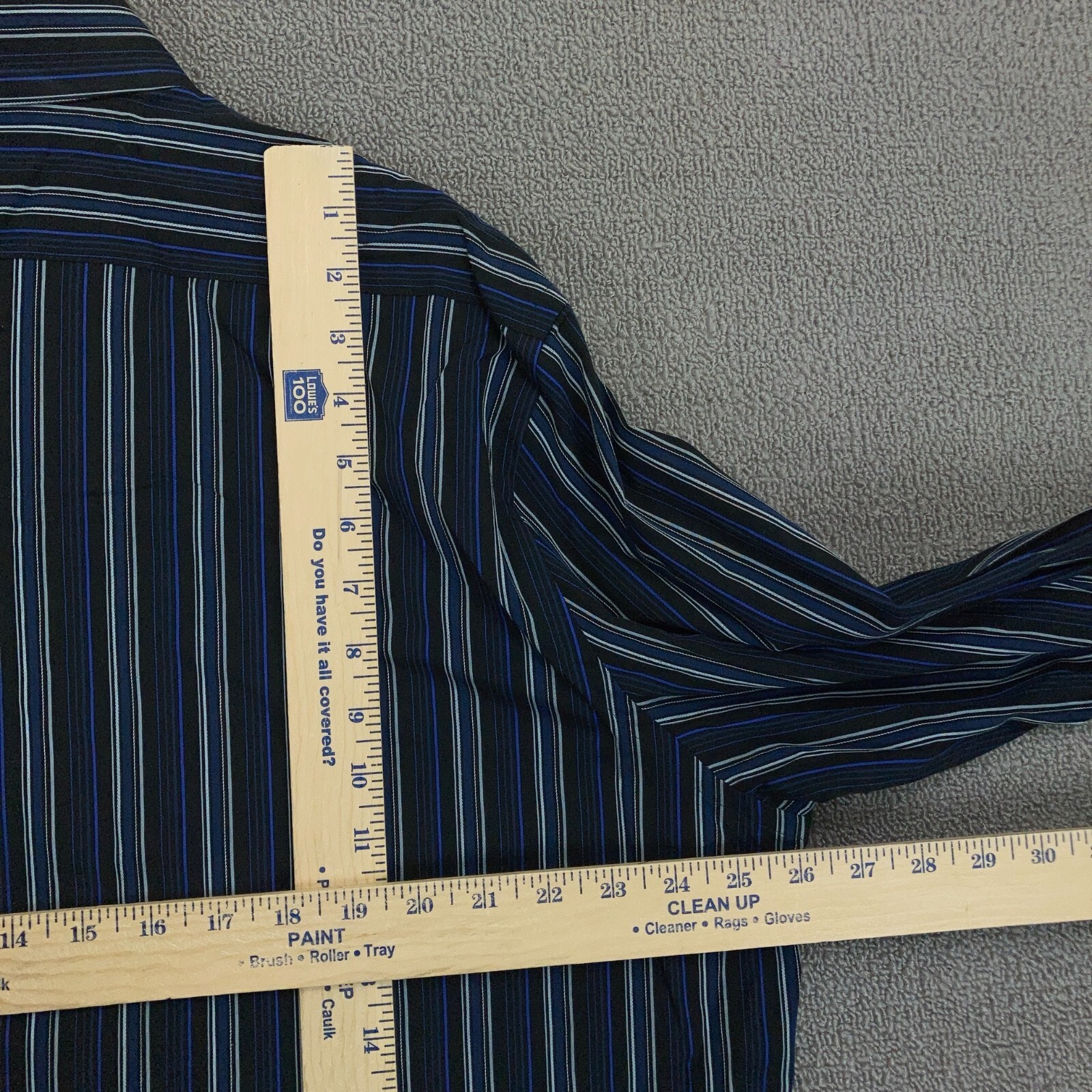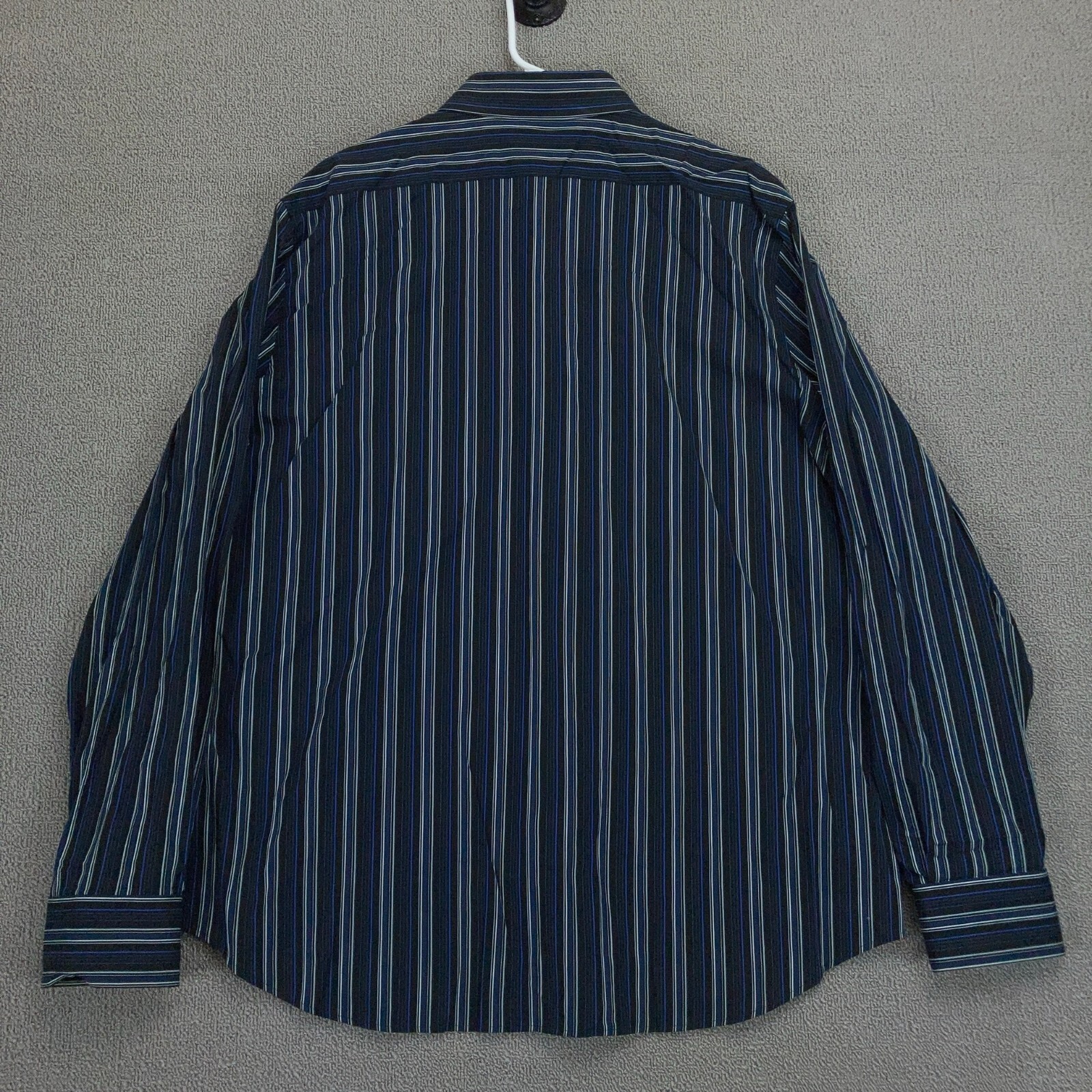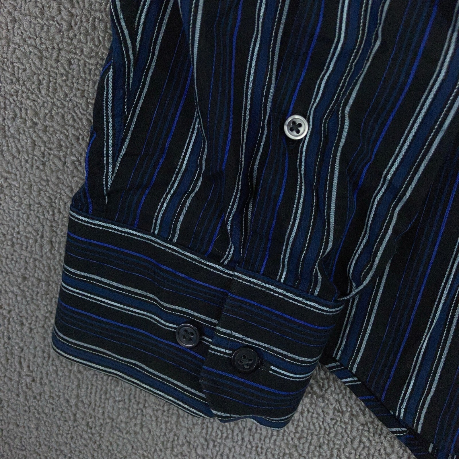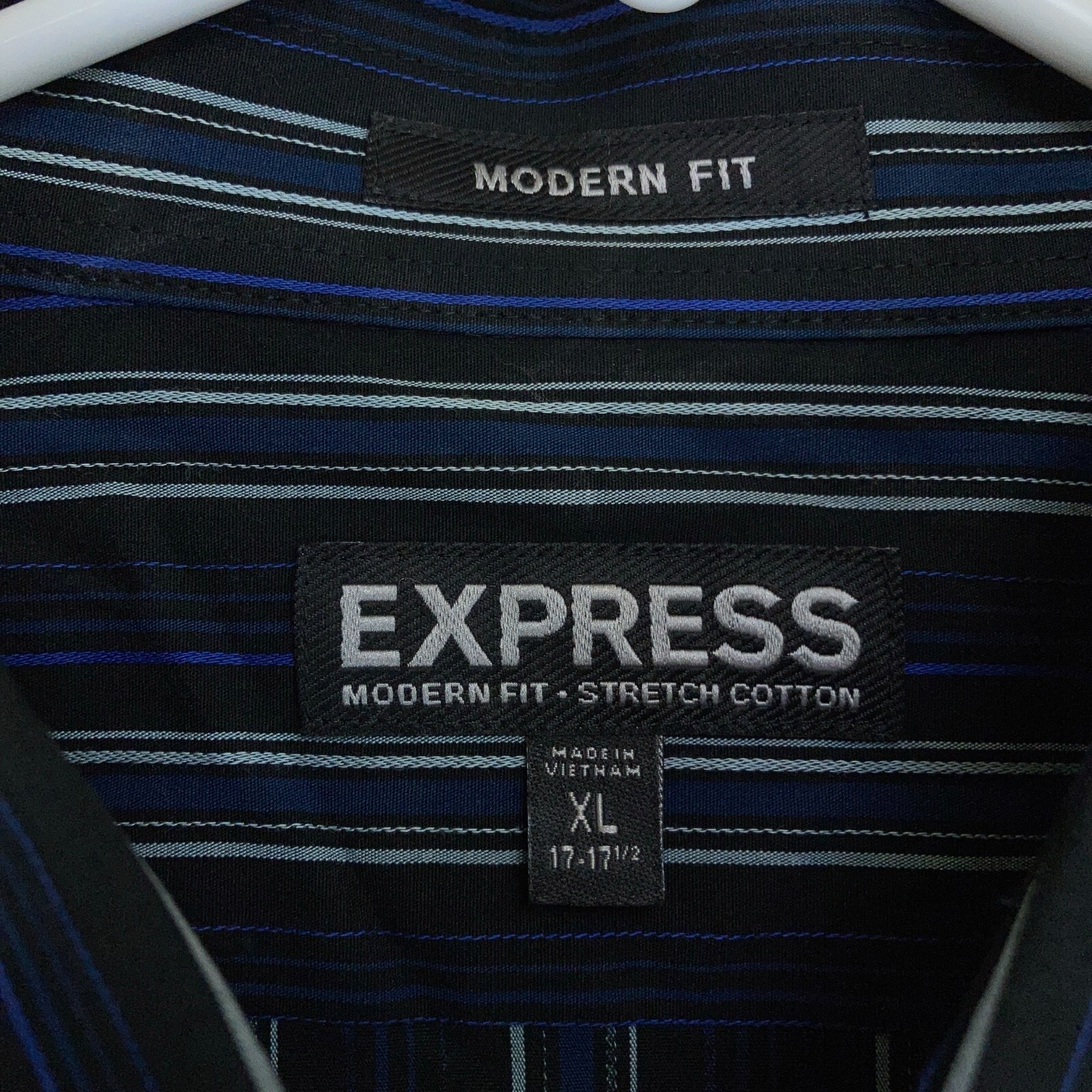 как выглядит Express Button Up Shirt Mens XL Stretch Modern Fit Long Sleeve Black Blue Stripe фото