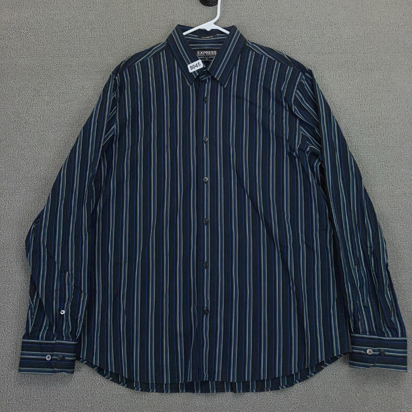 Express Button Up Shirt Mens XL Stretch Modern Fit Long Sleeve Black Blue Stripe