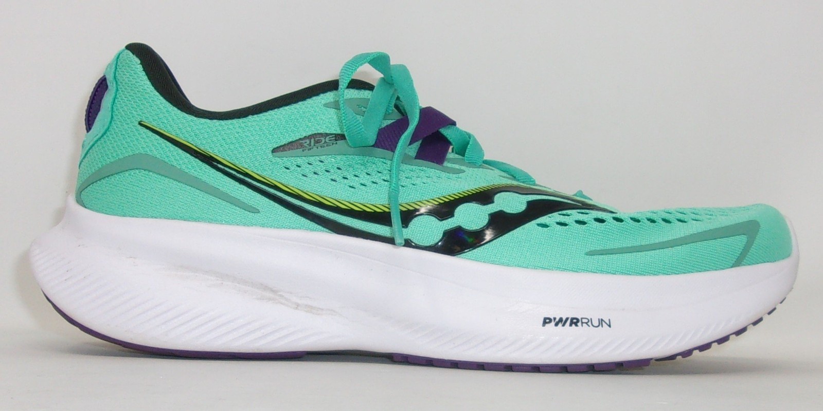 Saucony Women's Ride 15 Running Shoes, Cool Mint/Acid, 7.5 US - USED